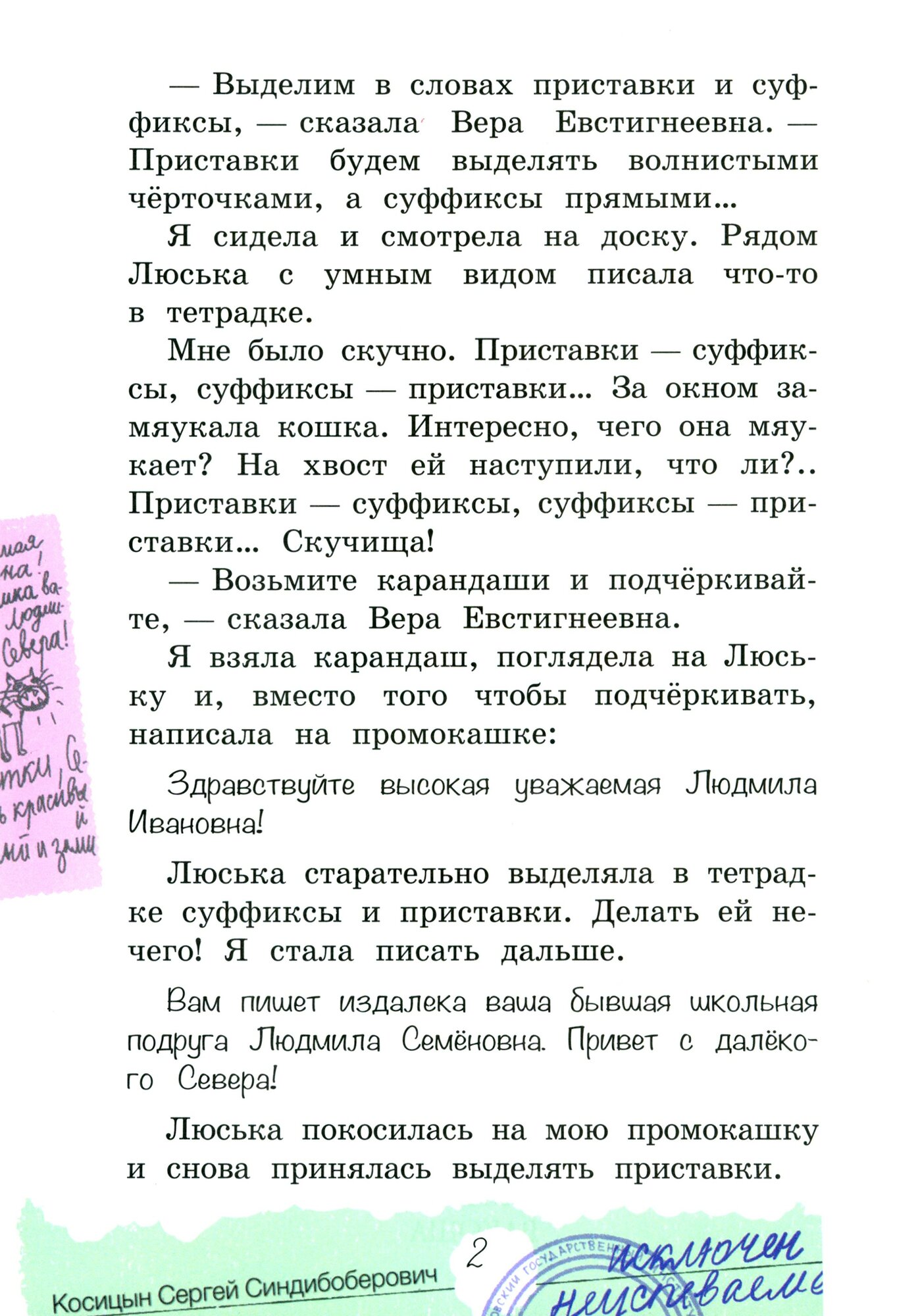 Рассказ Ирины Пивоваровой «Привет с далекого Севера! » один из самых веселых рассказов цикла про Люсю Синицину. Крупный, удобный для чтения шрифт и атмосферные иллюстрации помогут сделать процесс чтения легким и увлекательным.