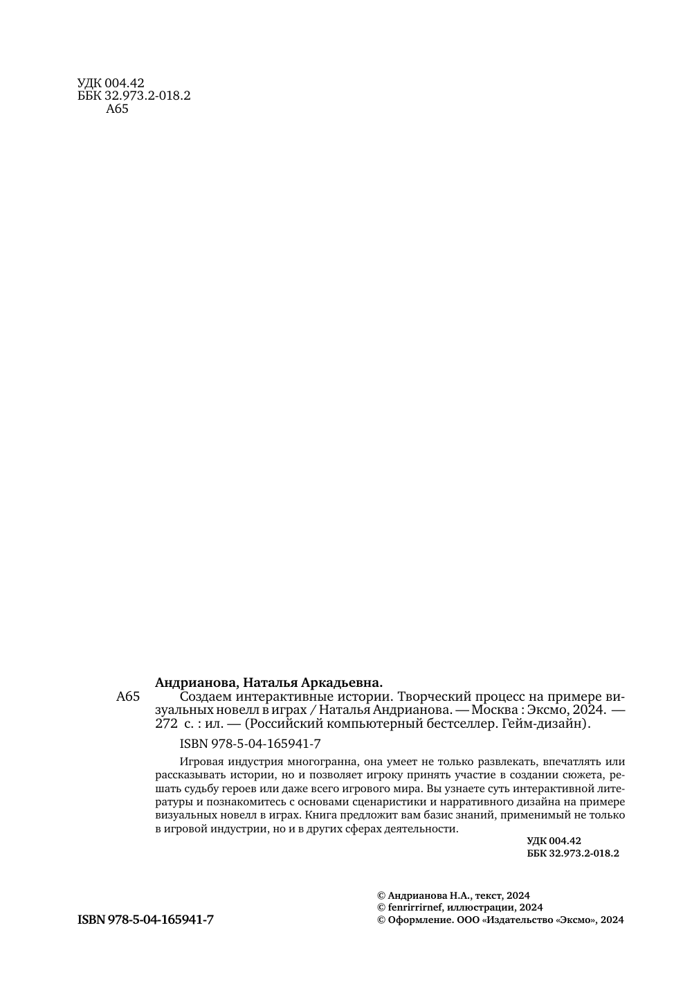 Создаем интерактивные истории. Творческий процесс на примере визуальных новелл в играх (Андрианова Наталья Аркадьевна); ООО "Издательство "Эксмо", 2024