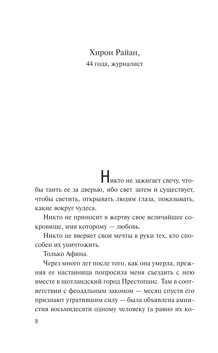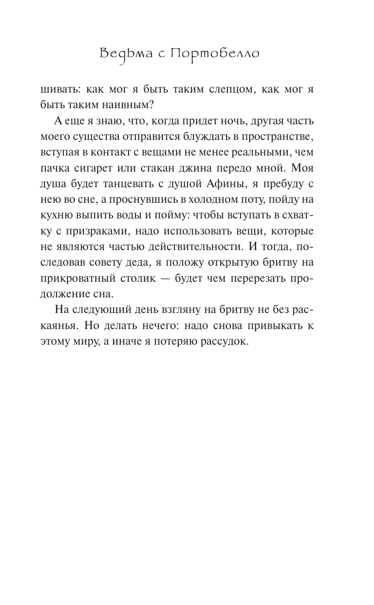 Свет — нестоек, ветер гасит его, молния вновь зажигает, никогда он не будет прямо здесь, сияющий, как солнце, — и все-таки он стоит того, чтобы за него бороться. «Ведьма с Портобелло» — это история таинственной женщины по имени Афина. О ней и о ее жизни рассказывают несколько человек, кто-то знал ее хорошо, кто-то не знал вовсе. Это одна из тех книг, что меняют наши представления о любви, страсти, радости и жертвенности.