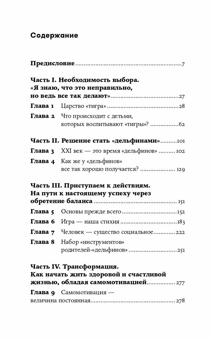 Все родители желают своим детям счастья. Но насколько по-разному они представляют его! Родители-тигры видят счастье в успехе, под которым понимают только будущую престижную работу и высокий статус. Ради достижения цели они не останавливаются ни перед чем. Чрезмерная загруженность, постоянный родительский контроль и жесткий диктат — так проходит детство ребенка, которого решили осчастливить любой ценой. Но в самом ли деле полнокровная жизнь с ее радостями несовместима с высокими достижениями, и выбирать надо либо то, либо другое? Разве нельзя вырастить здоровых, гармоничных и одновременно действительно благополучных детей? Можно, говорит Шими Канг, специалист по детскому психическому здоровью и мама двоих сыновей и дочки, и предлагает свой метод — путь дельфина — стратегию чуткого, авторитетного родительства. По этому пути она не раз проходила вместе со своими пациентами и ведет по нему своих детей. Теперь она открывает этот путь нам и готова стать нашим проводником и наставником.