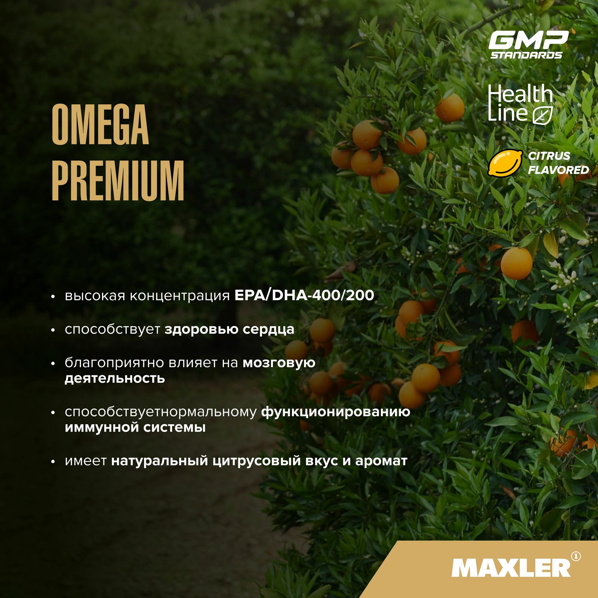 Omega-3 Premium содержит высокую концентрацию EPA/DHA – 400/200 – для общего здоровья организма, сердечно-сосудистого здоровья и мозговой деятельности. Натуральный цитрусовый вкус сделает прием продукта еще более приятным, помогая избежать “рыбного” послевкусия.