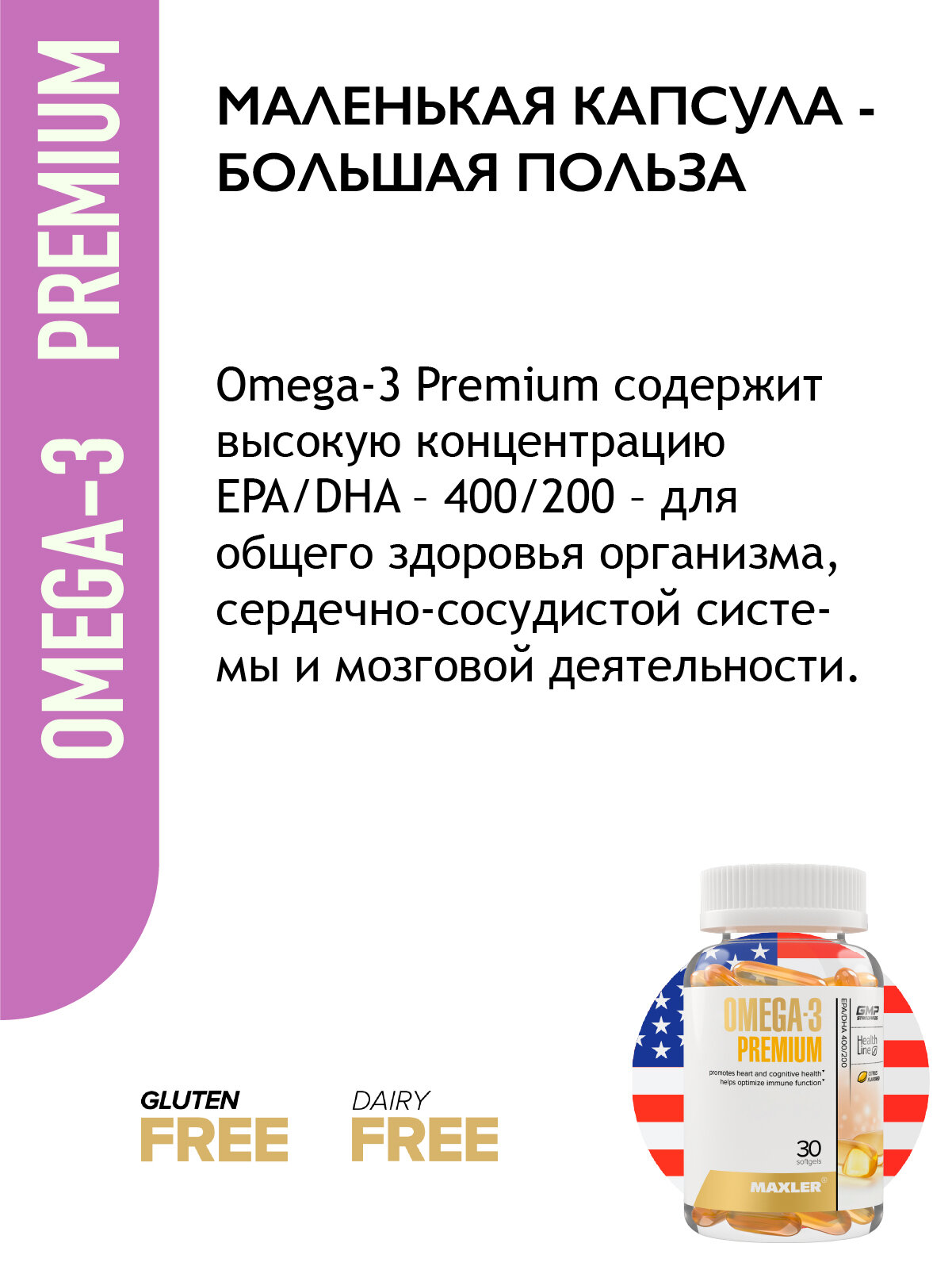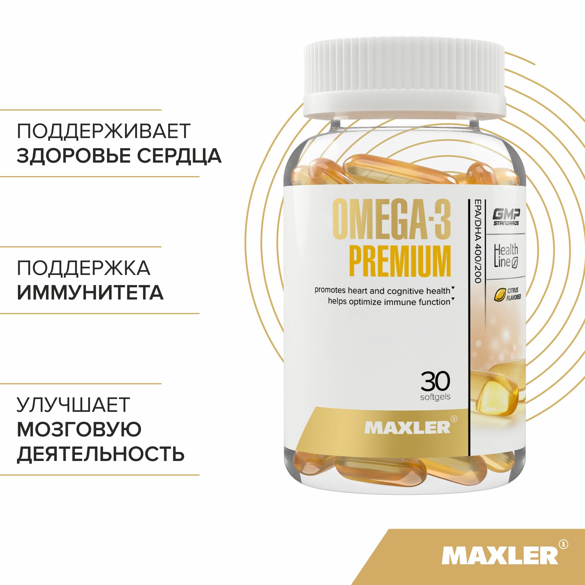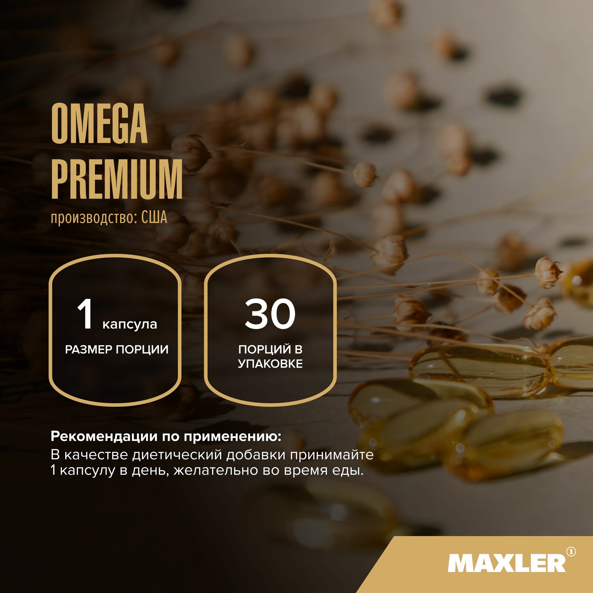 Омега-3 Премиум Maxler/Макслер капсулы 1300мг 30шт GTI USA (2559978)