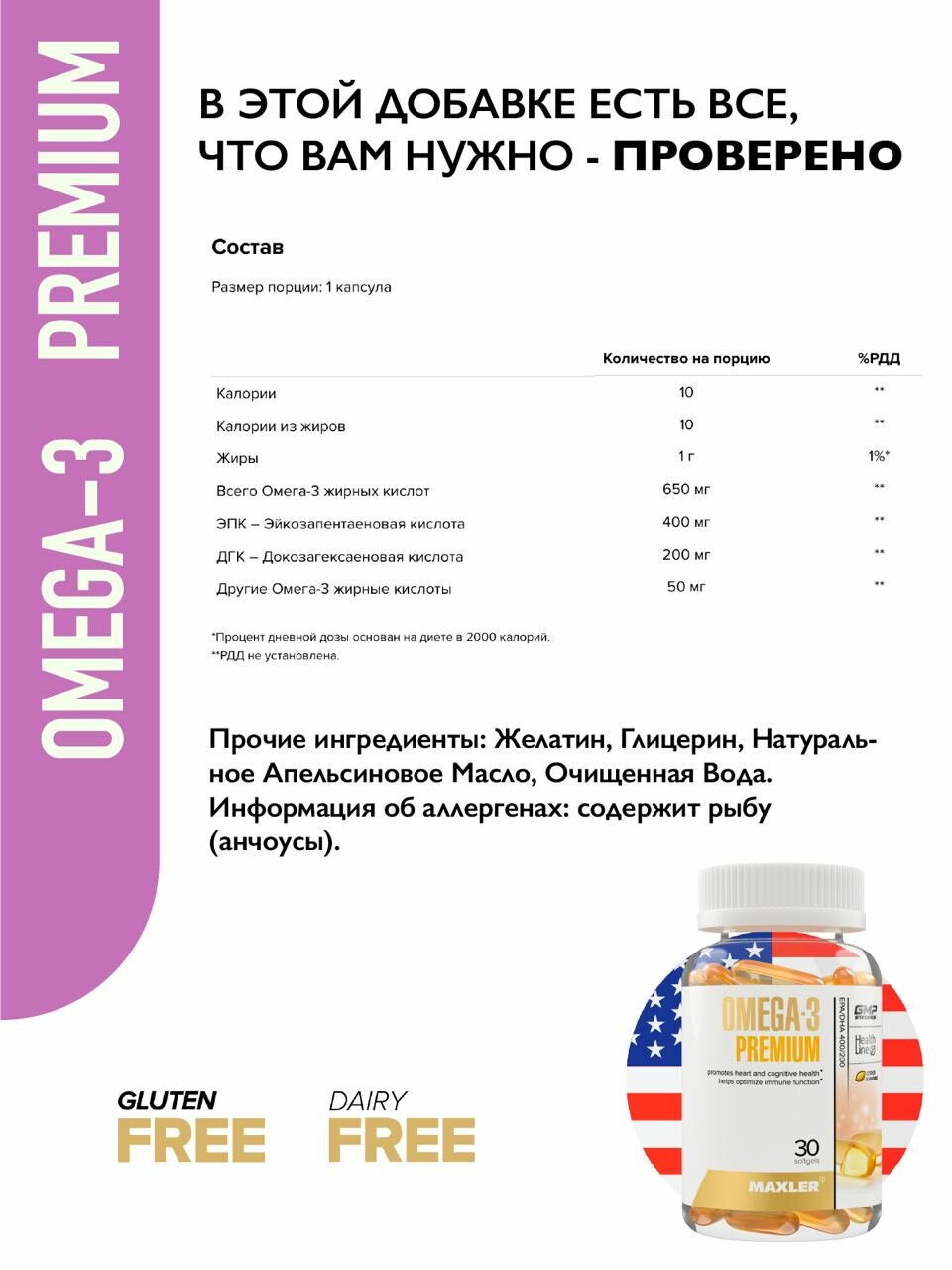Тип товара: БАДы Рыбий жир и омега-3