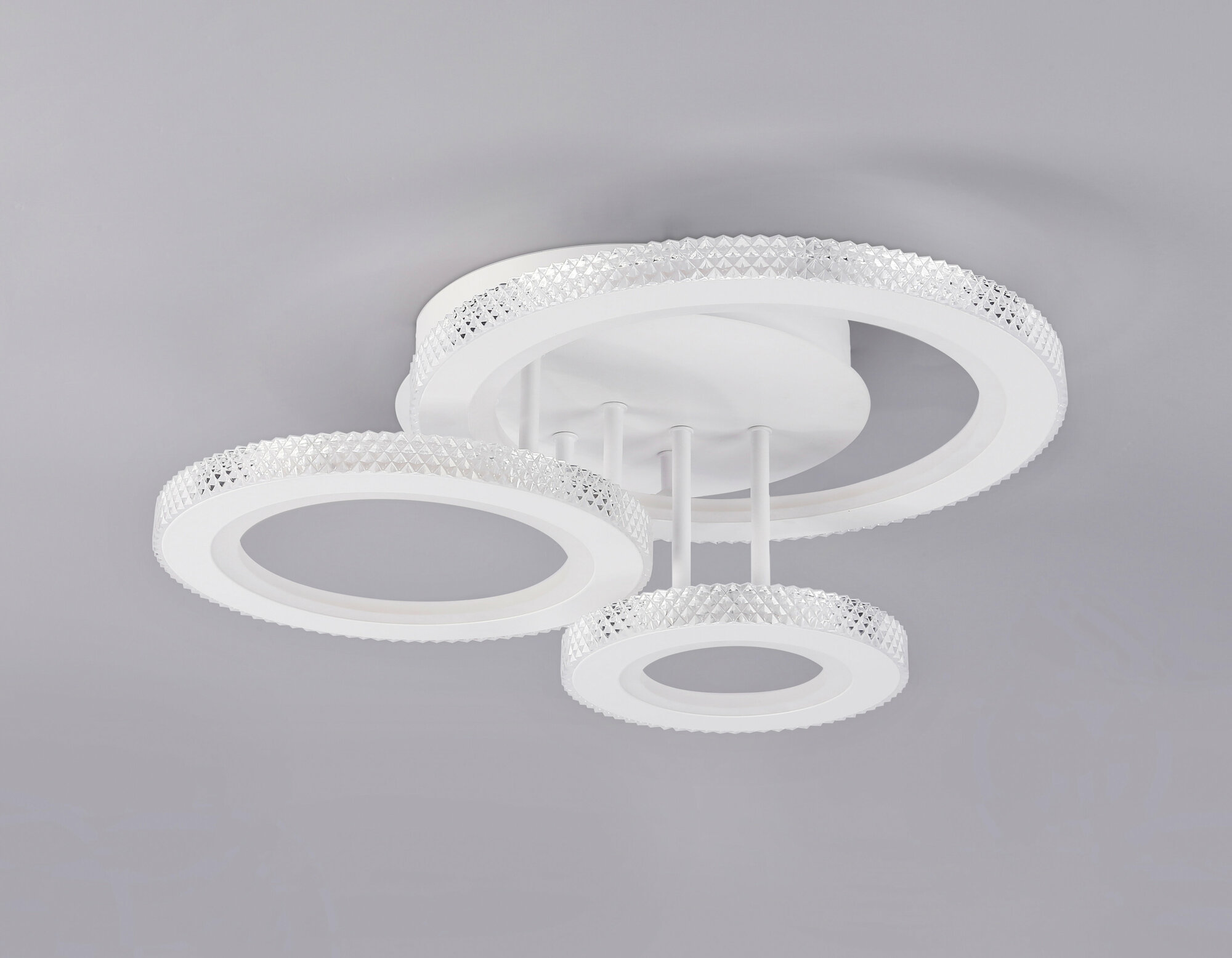 Современный потолочный светодиодный светильник, коллекция ACRYLICA. Модель представлена в современном стиле Неоклассика. Светильник выполнен в белом цвете, круглой формы, состоит из 3 акриловых плафонов на металлическом каркасе. Эта модель оснащена встроенными светодиодами, благодаря чему вы забудете о замене дополнительных ламп. Так же с помощью инфракрасного пульта вы сможете регулировать цветовую температуру, яркость освещения. Данная модель подходит для натяжных потолков и будет прекрасным дополнением в любом помещении.