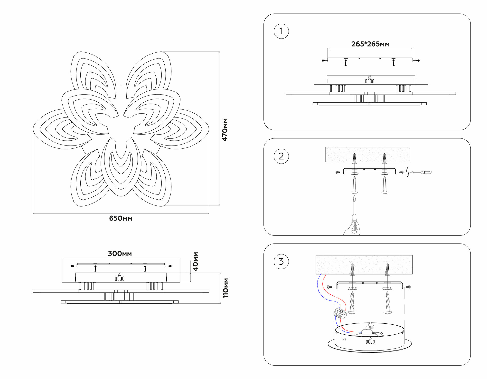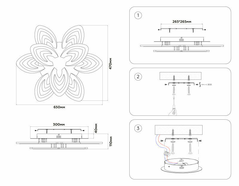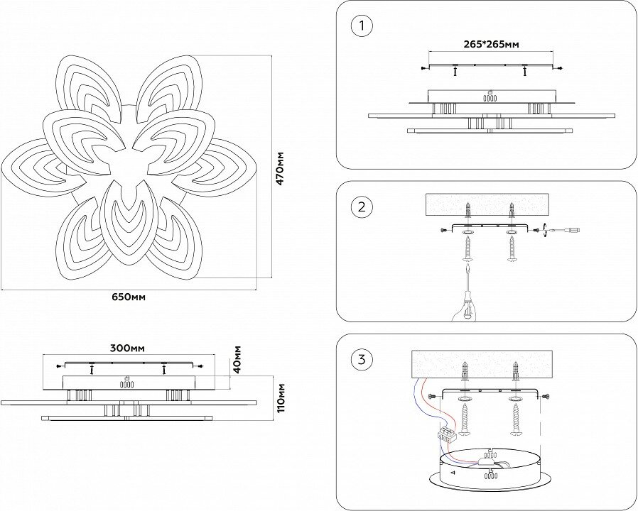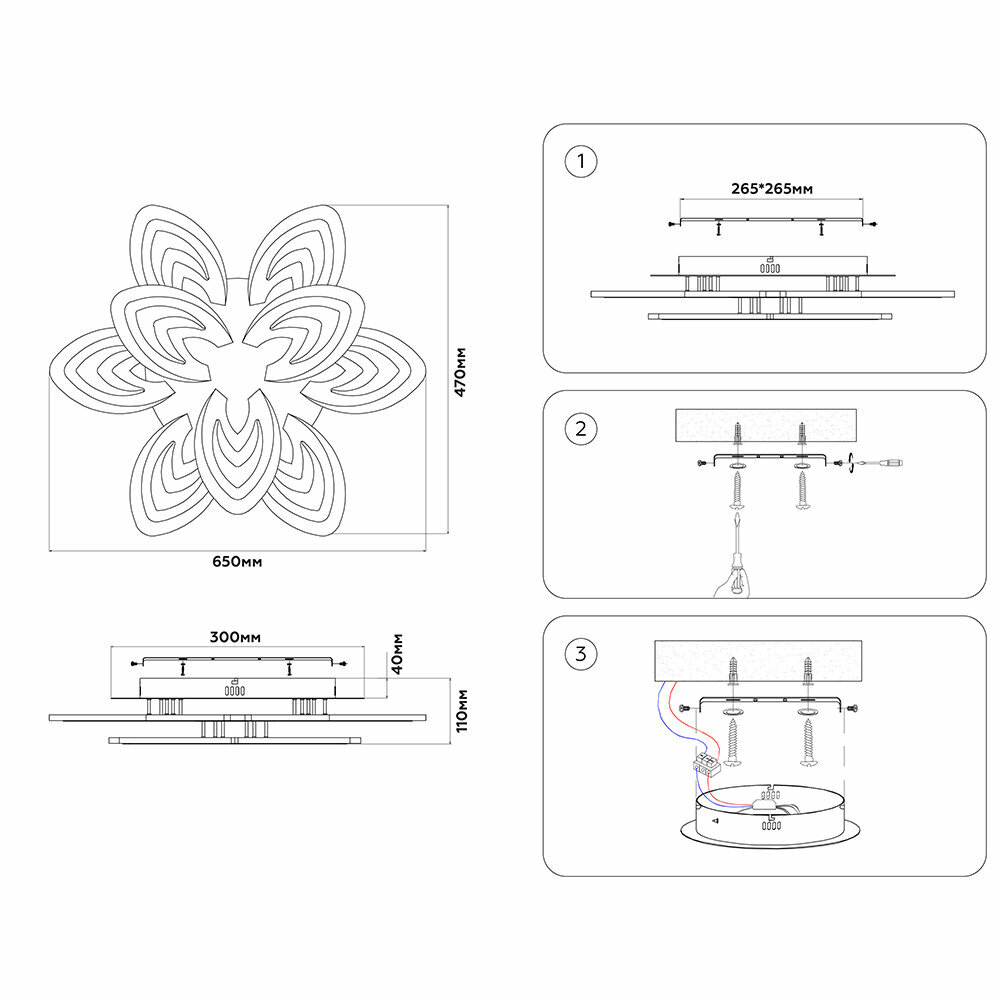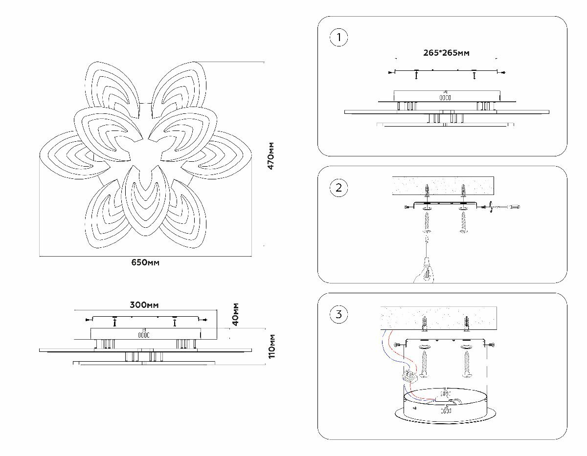 | Место установки | На потолок |
