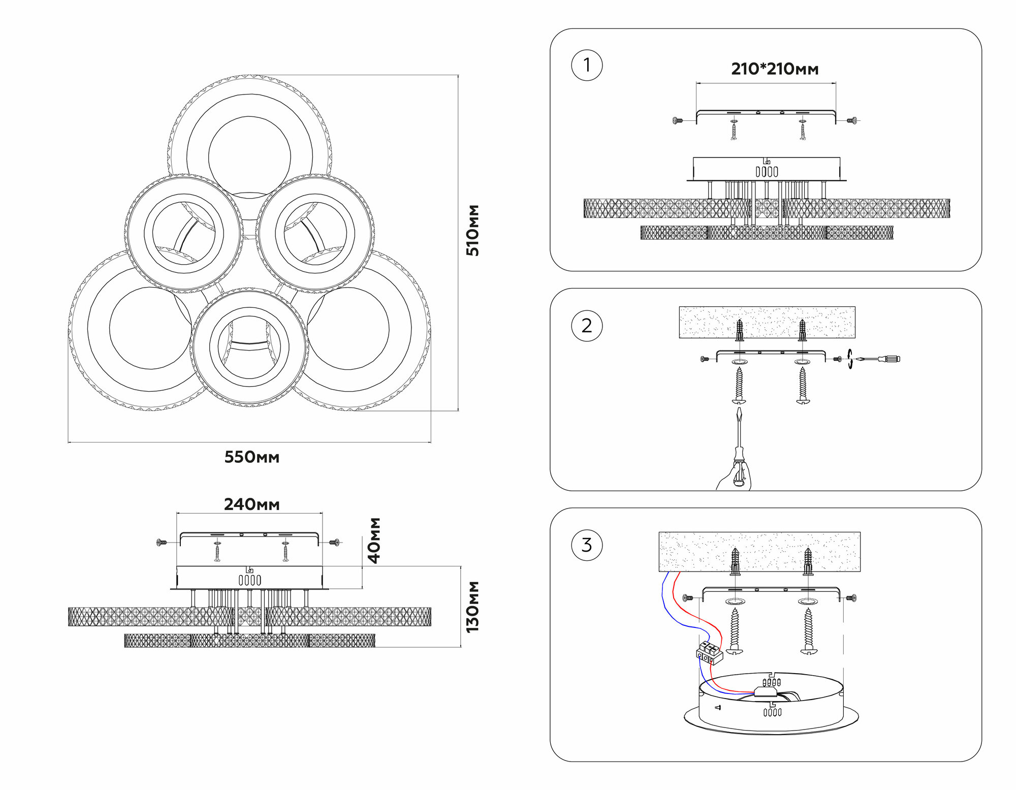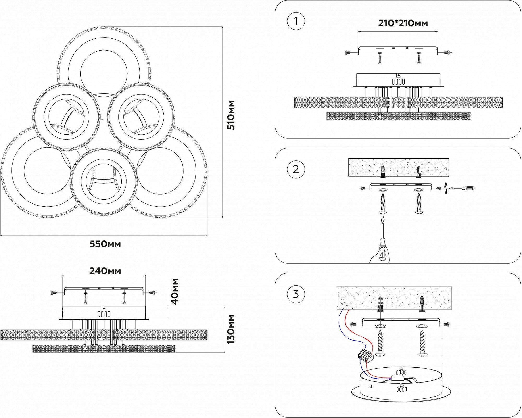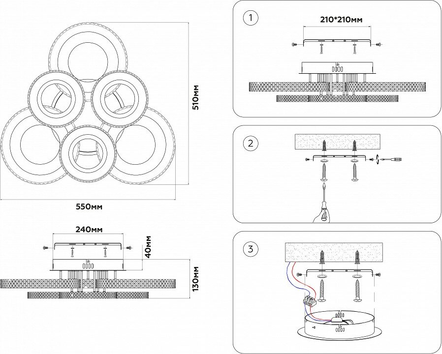 | Место установки | На потолок |