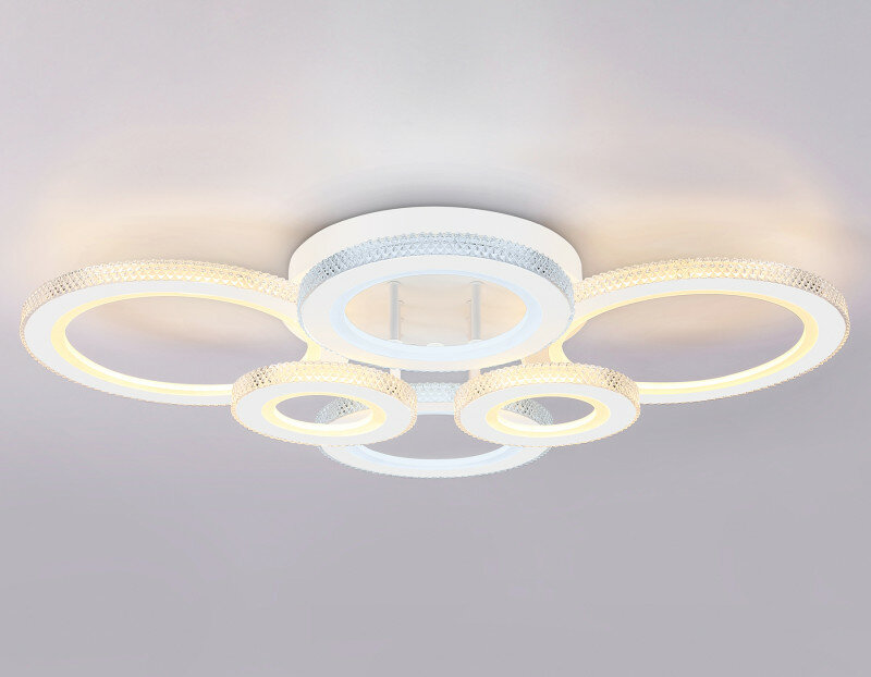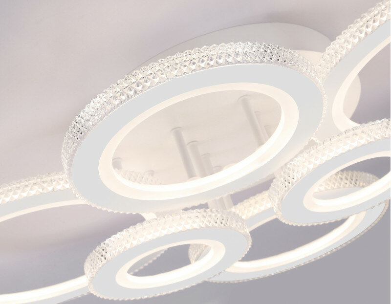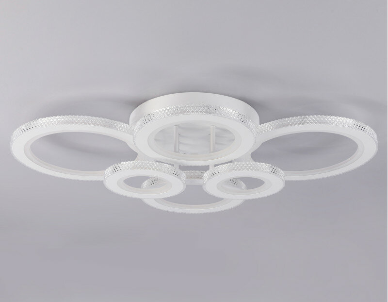 Современный потолочный светодиодный светильник, коллекция ACRYLICA. Модель представлена в современном стиле Неоклассика. Светильник выполнен в белом цвете, состоит из 6 акриловых плафонов на металлическом каркасе. Эта модель оснащена встроенными светодиодами, благодаря чему вы забудете о замене дополнительных ламп. Так же с помощью инфракрасного пульта вы сможете регулировать цветовую температуру, яркость освещения и ночной режим. Данная модель подходит для натяжных потолков и будет прекрасным дополнением в любом помещении.