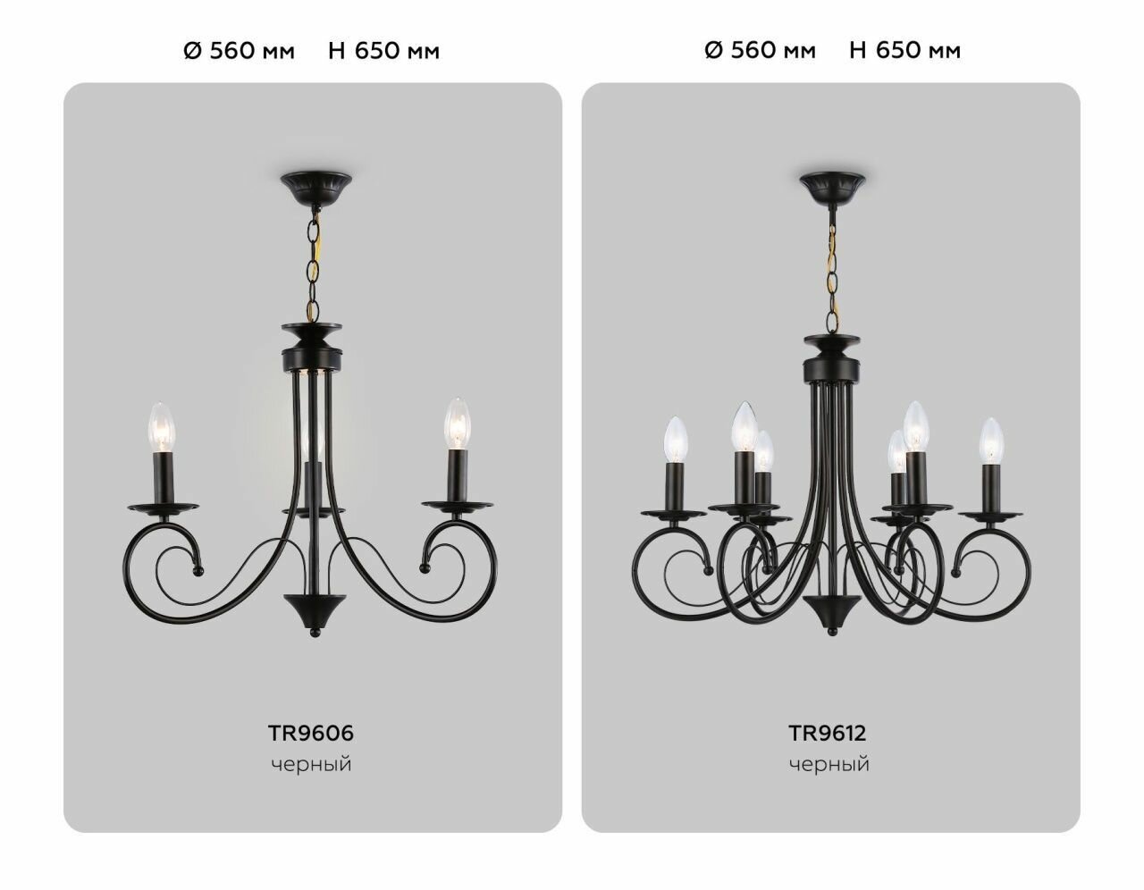 | Номенклатура | TR9606/3 BK черный E14/3 max 40W D560*650 |