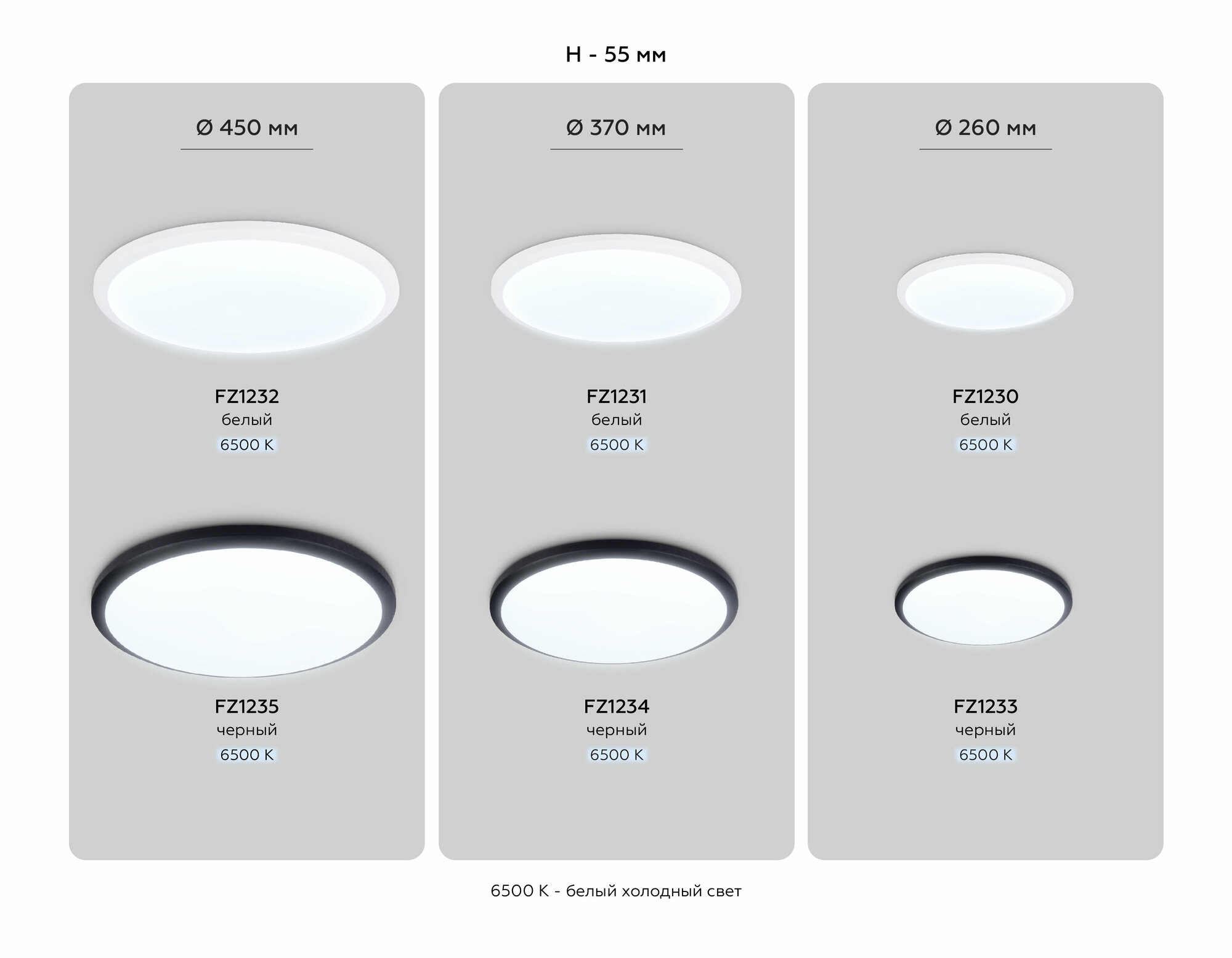 | Номенклатура | FZ1232 WH белый IP44 48W 6400К D450*55 (Без ПДУ) |