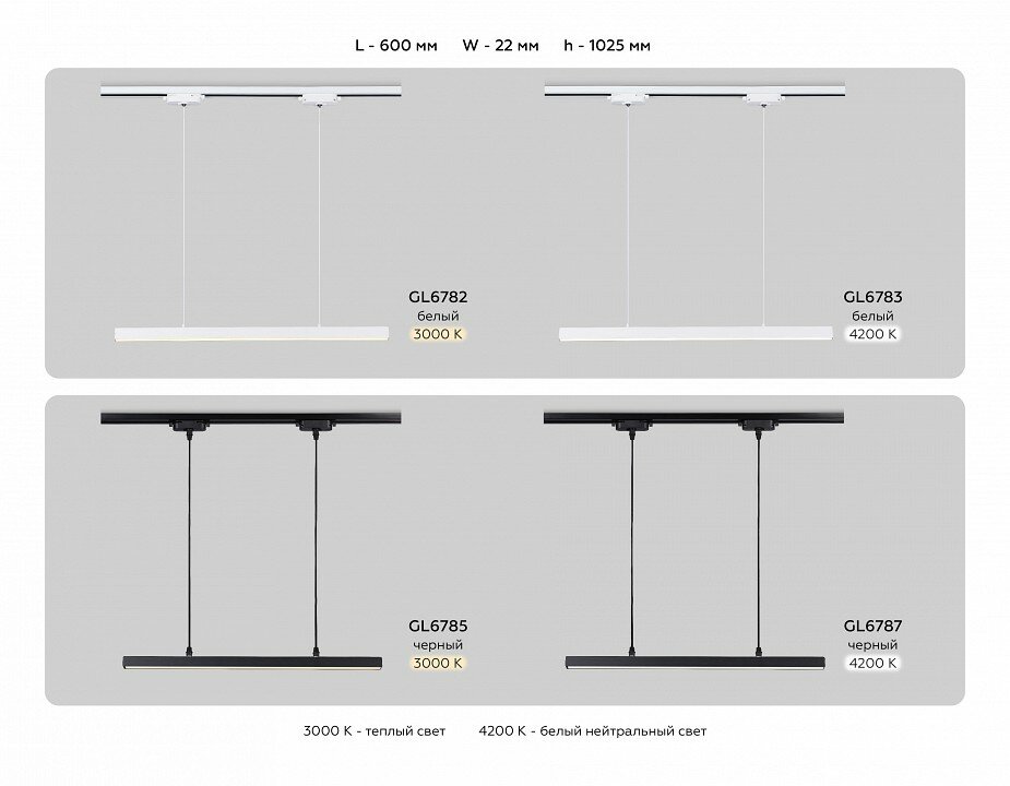 | Номенклатура | GL6785 BK черный LED 24W 3000K 600*22*1025 |