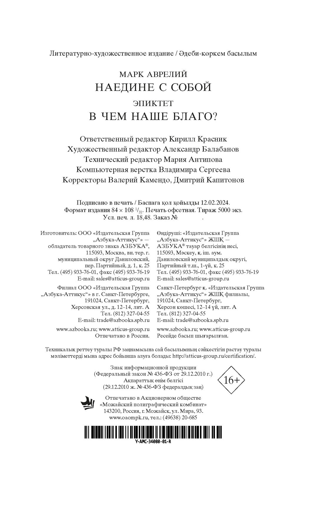 Наедине с собой. В чем наше благо? (Эпиктет, Антонин Марк Аврелий); Азбука, 2025