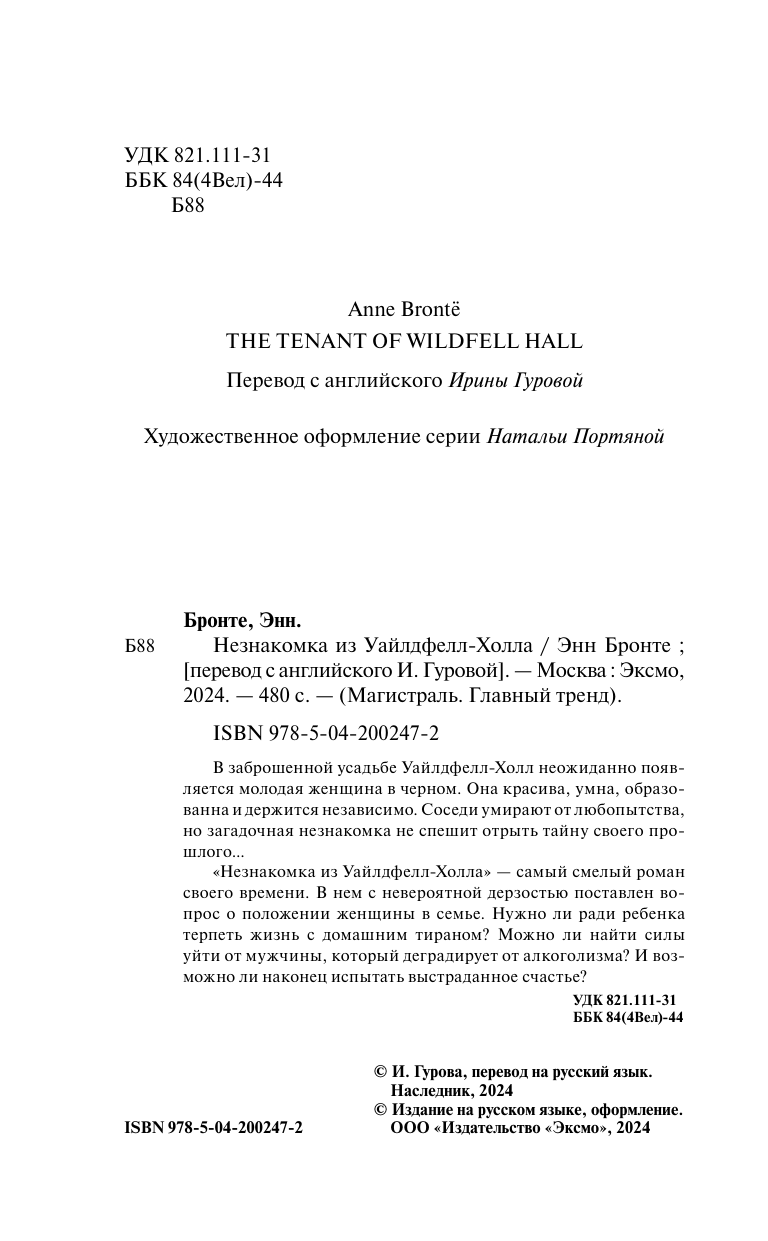 Незнакомка из Уайлдфелл-Холла (Энн Бронте); Эксмо, Редакция 1, 2025
