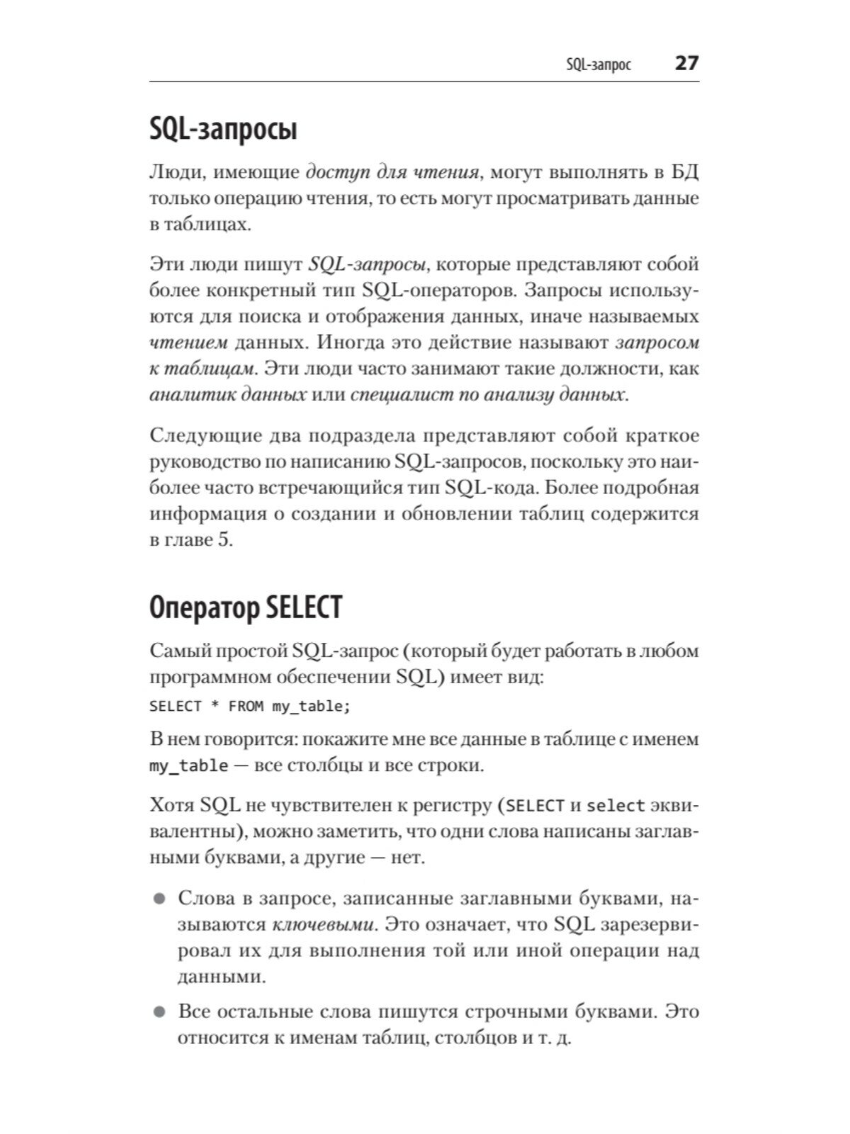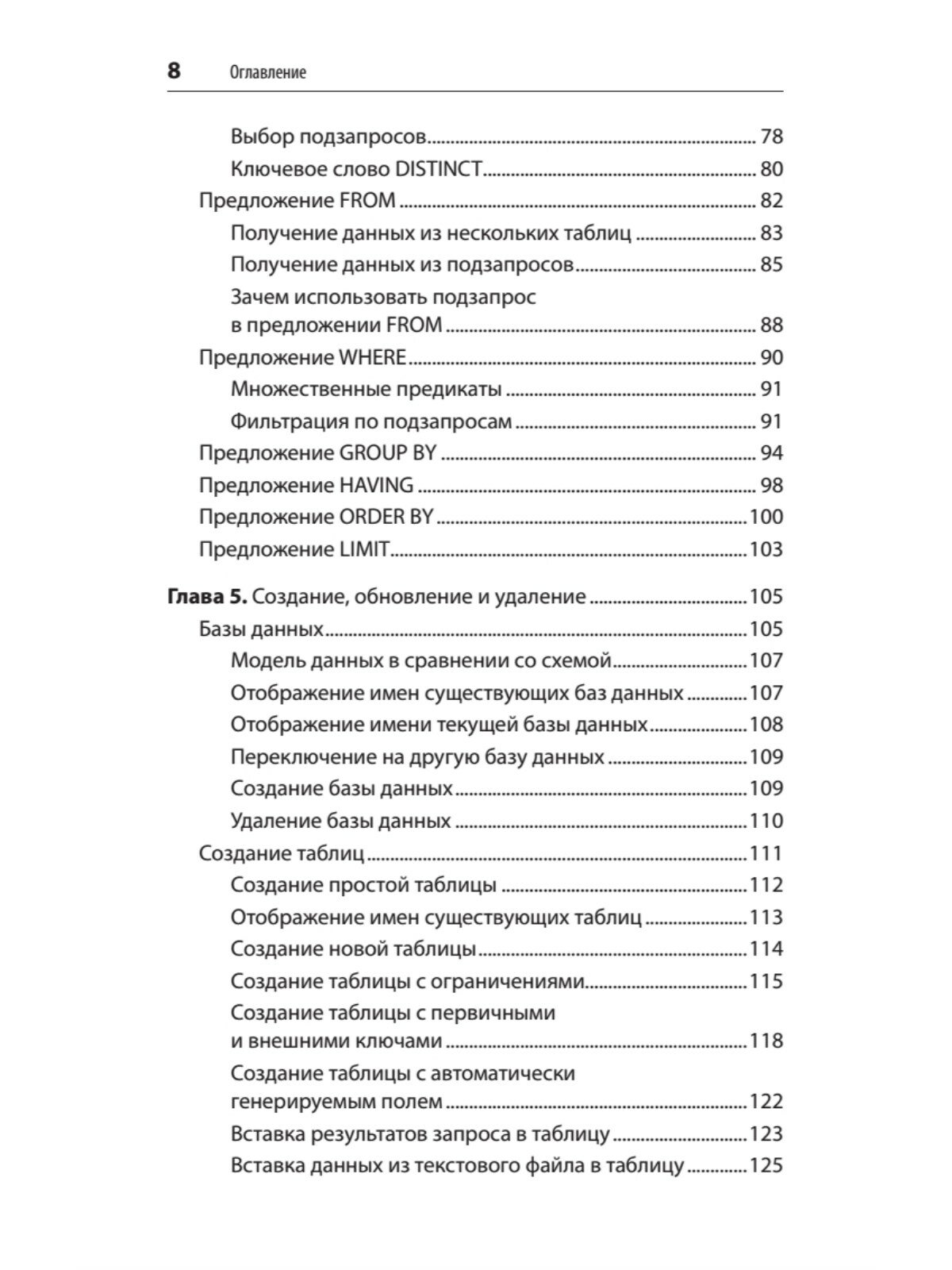 В обновленном издании Элис Жао описывает, как в этих СУБД используется SQL для формирования запросов и внесения изменений в базу. Получите подробную информацию о типах данных и их преобразованиях, синтаксисе регулярных выражений, оконных функциях, операторах PIVOT и UNPIVOT и многом другом.