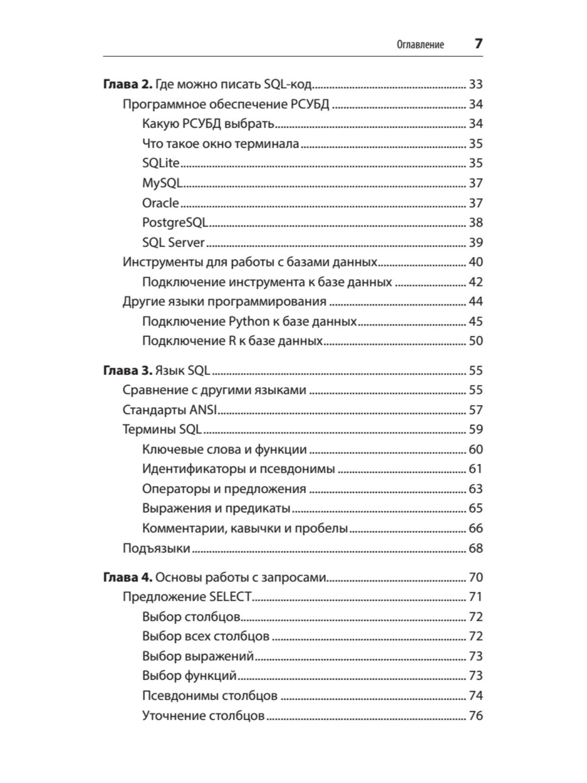 Если вы аналитик или инженер по обработке данных и используете SQL, популярный карманный справочник станет для вас идеальным помощником. Найдите множество примеров, раскрывающих все сложности языка, а также ключевые аспекты SQL при его использовании в Microsoft SQL Server, MySQL, Oracle Database, PostgreSQL и SQLite.