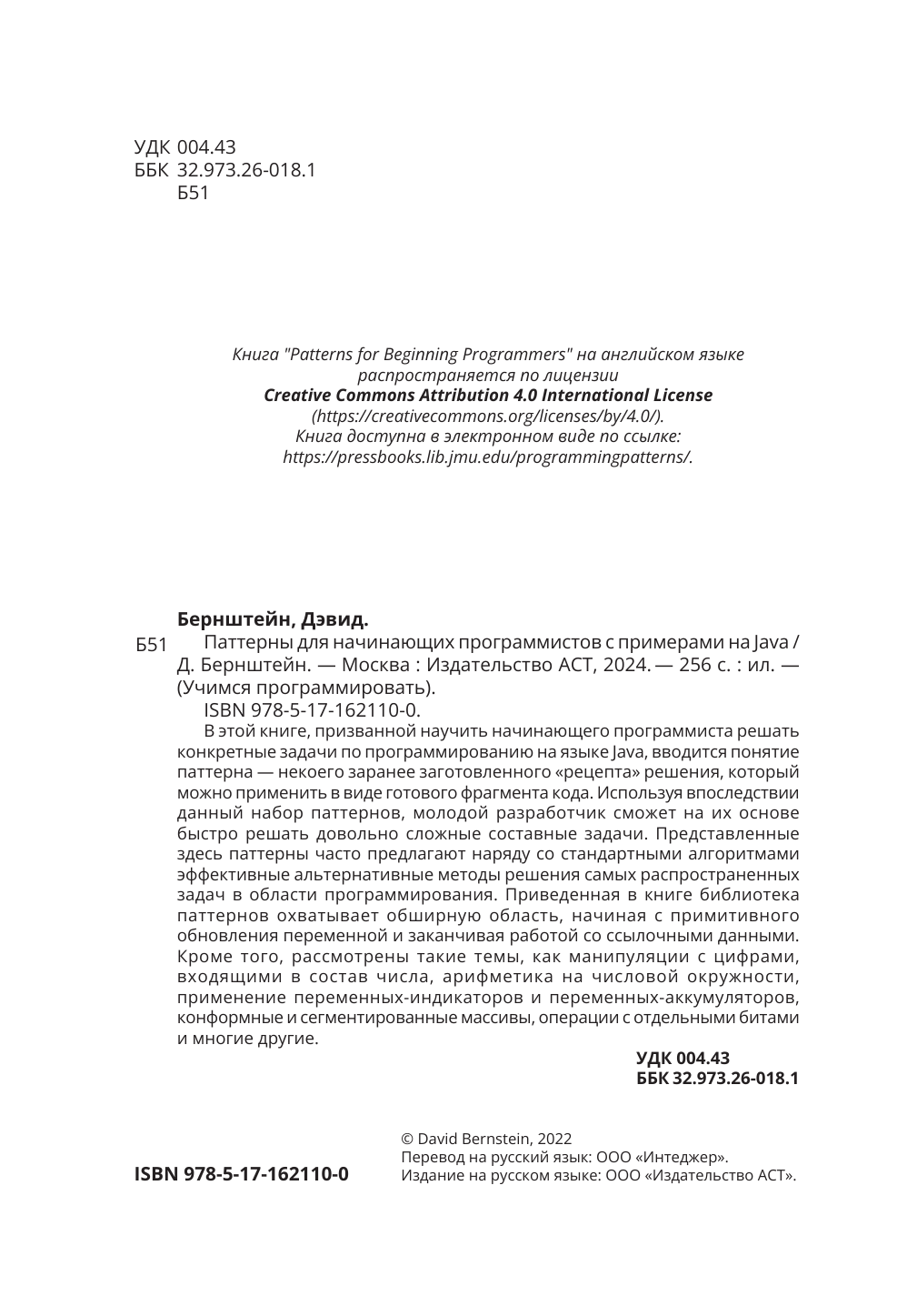 Паттерны для начинающих программистов с примерами на JAVA (Дэвид Бернштейн); Издательство АСТ, 2022