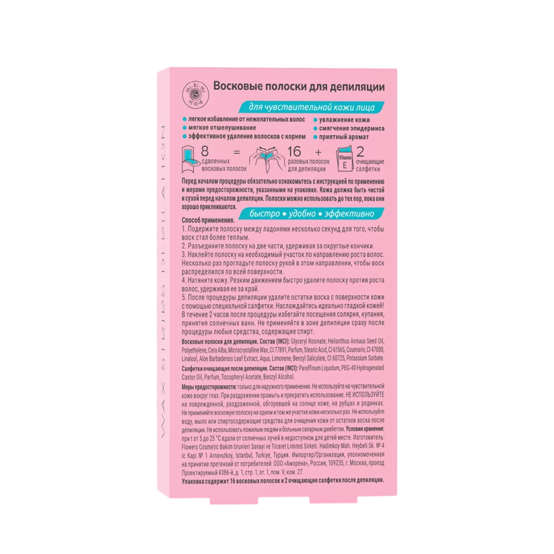 Полоски восковые для депиляции чувствительной кожи лица Mi-ri-ne/Ми-ри-не 16шт Flowers Cosmetic Bakim Urunleri Sanayi ve Ticaret (2952244)