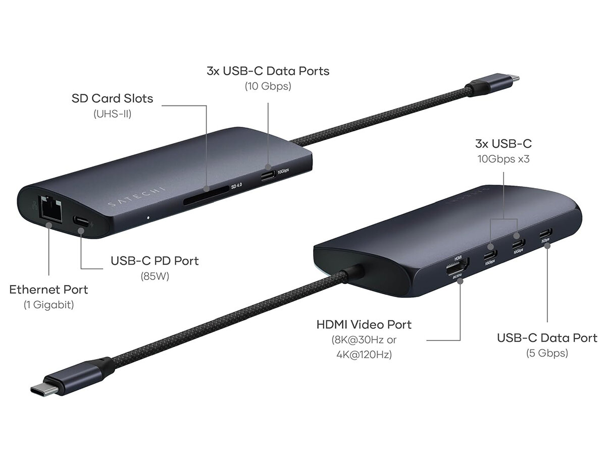 | Наименование модели | Satechi USB-C Multiport Adapter 8K with Ethernet V3 Midnight |
