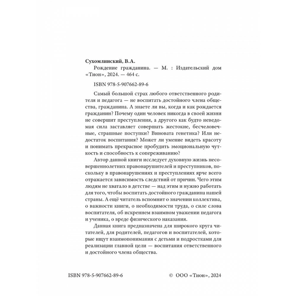 Книга: Рождение гражданина (Василий Александрович Сухомлинский); Издательский дом "Тион", 2024