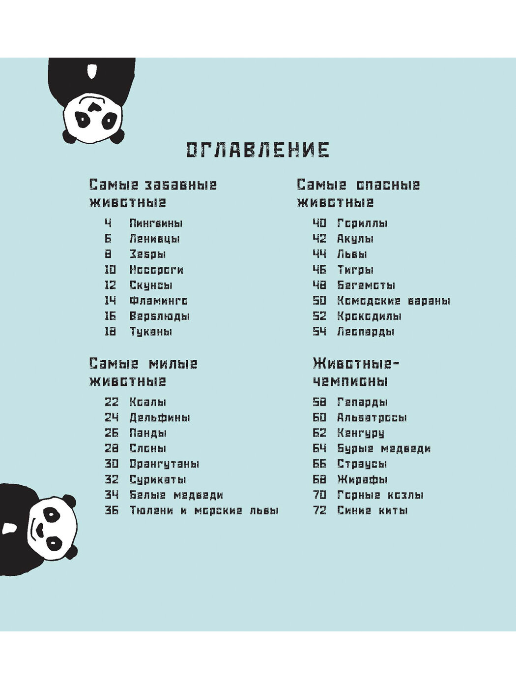 В этой познавательной книге с великолепными фотографиями и веселыми авторскими рисунками собраны истории о «самых-самых» самых забавных, самых милых, самых опасных диких животных. Тут и неуклюжие пингвины, и милые панды, и коварные тигры, и страшные крокодилы, и смешные сурикаты, и быстроногие гепарды Вы узнаете, какая птица может перелететь через море, чтобы найти корм для своих птенцов, для чего слону хобот, кто помогает подслеповатым носорогам находить дорогу в саванне, кто спит дольше всех зверей, что ест в пустыне верблюд и многое другое.