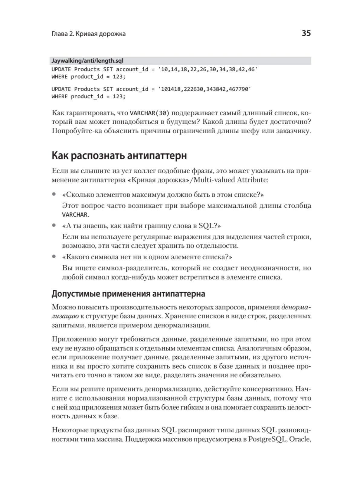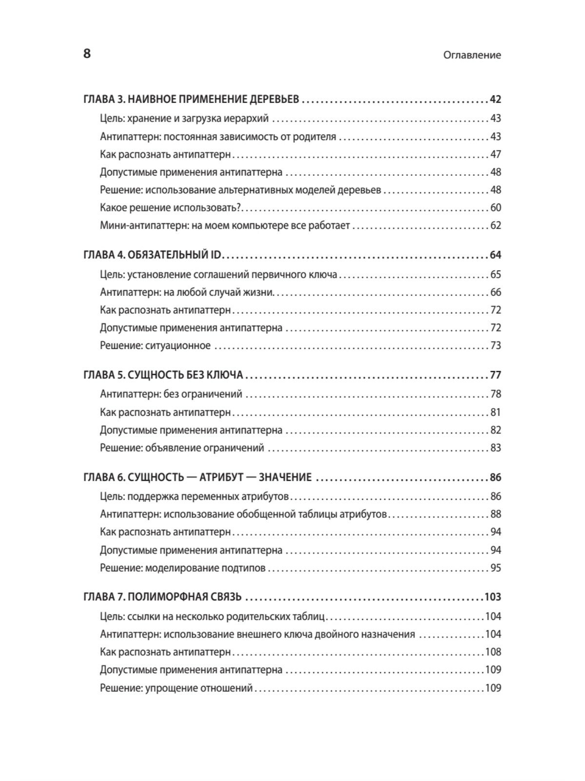 Язык SQL необходим для работы со структурированными данными. Программисты, прекрасно знающие свой любимый язык (Java, Python или Go), не могут разбираться во всем, и часто не являются экспертами в SQL. Это приводит к появлению антипаттернов, решений, которые на первый взгляд кажутся правильными, но со временем создают вс больше проблем.Научитесь выявлять и обходить многие из этих распространенных ловушек! Проведите рефакторинг унаследованного кошмара и превратите его в жизнеспособную модель данных!Примеры SQL-кода основаны на версии MySQL 8.0, но в тексте также упоминаются другие популярные РСУБД.В примерах кода используется Python 3.9+ или Ruby 2.7+.