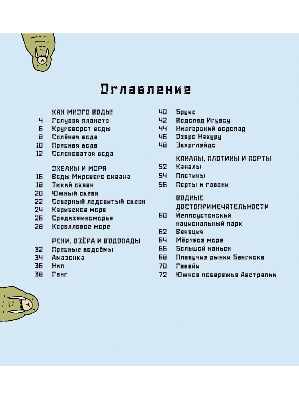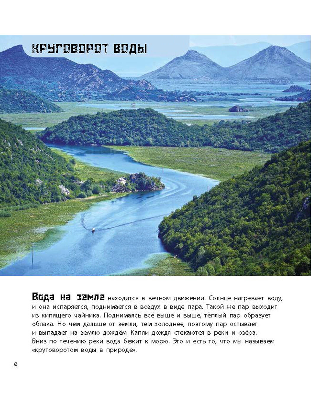 В этой познавательной книге с великолепными фотографиями собраны увлекательные сведения о водном мире нашей планеты. Что такое круговорот воды в природе? Чем отличается вода в реках и в океанах? Здесь вы найдёте истории о самых необычных и живописных реках и озёрах, о морях и океанах, об искусственных водоёмах, дамбах и гидроэлектростанциях. А еще в книге много занимательных заданий и весёлых авторских рисунков, благодаря которым новые знания легче усваиваются.