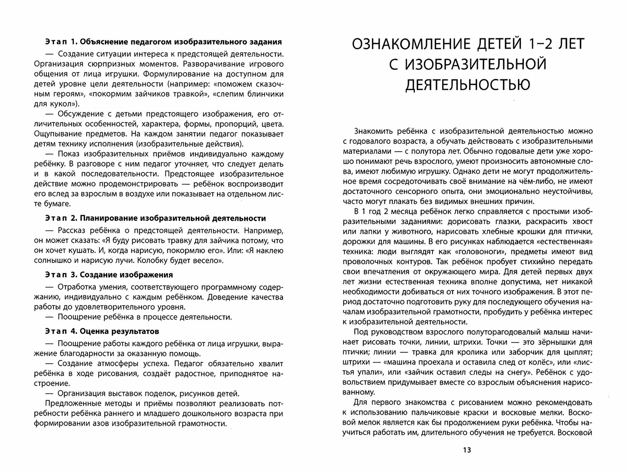 Как известно, любая изобразительная деятельность, будь то лепка или аппликация - это робкий, но очень важный шаг ребёнка навстречу к творчеству. На первый взгляд может показаться, что ребёнок просто водит карандашом по бумаге, но на самом деле мы становимся свидетелями настоящего творческого процесса. Процесса создания и обучения чему-то принципиально новому. Обучения тому, что приносит радость, даёт настоящий результат и создаёт первый шедевр. Рисовать пальцами и ладошками, правильно держать кисть и фломастер, сделать подарок своими руками, фантазировать и наблюдать за окружающим миром - спектр предлагаемых в пособии тем и игровых занятий превратит работу маленьких творцов в настоящий праздник творчества, а разнообразие форм и методов поможет педагогам сделать занятие уникальным и неповторимым! Пособие содержит конспекты занятий с детьми 1-4 лет по ознакомлению их с изобразительной деятельностью, обучению их азам изобразительной грамотности. Предлагаемые автором темы для занятий рисованием, лепкой, аппликацией составлены с учётом возрастных особенностей детей раннего и младшего возраста и их операционно-технических возможностей. Приведены игры и задания для поддержания интереса к изобразительной деятельности в условиях семьи.