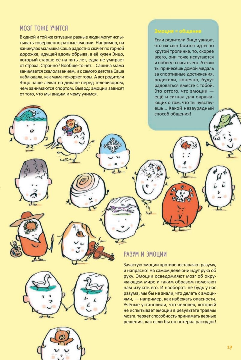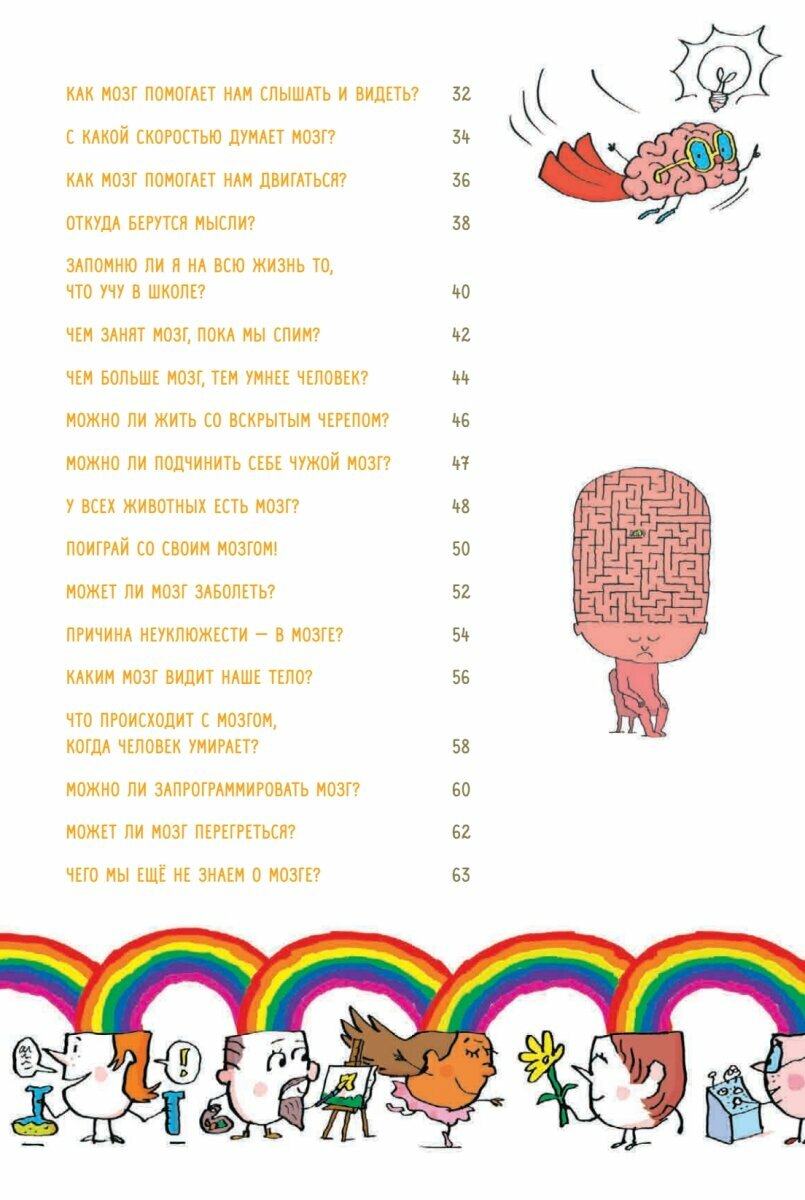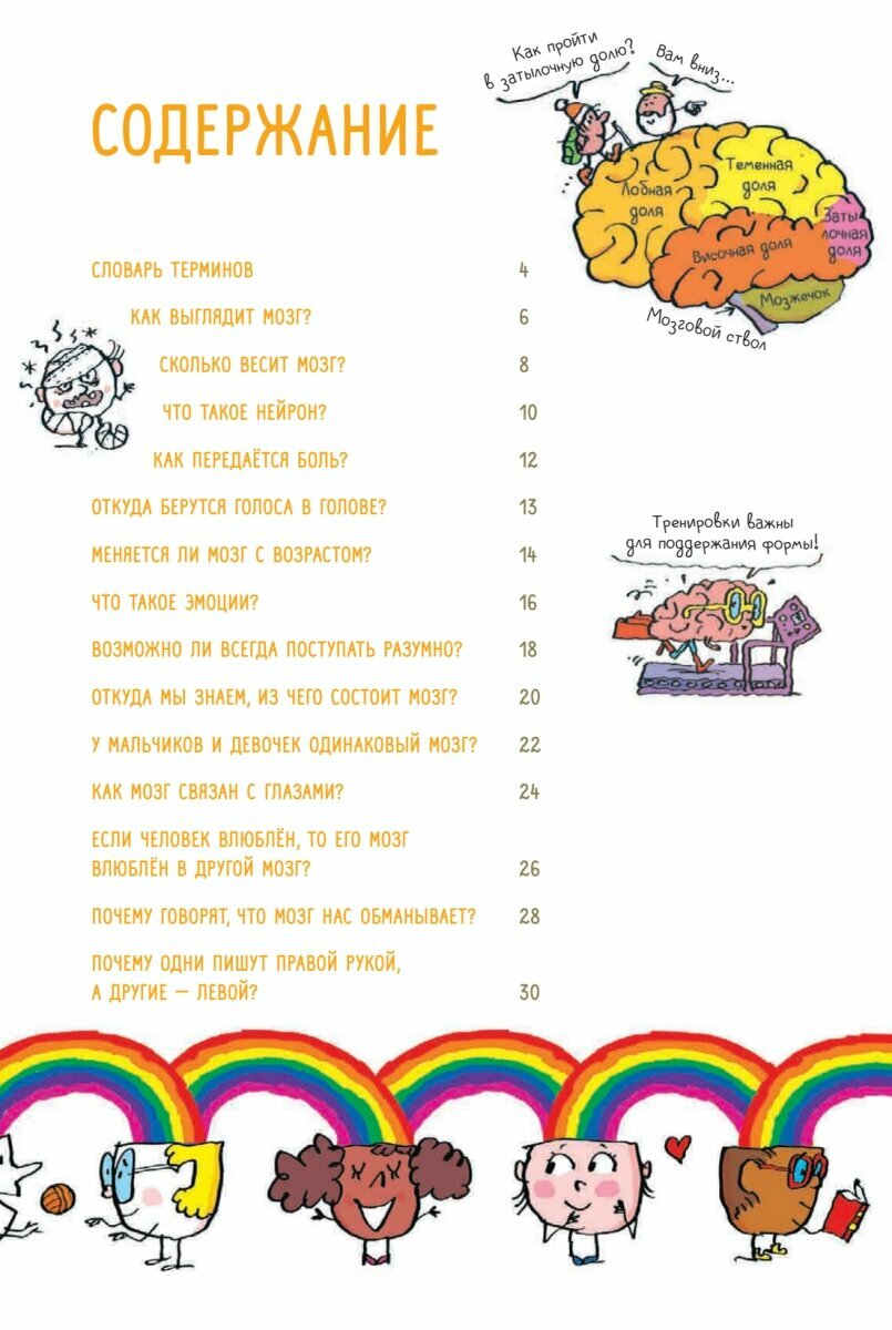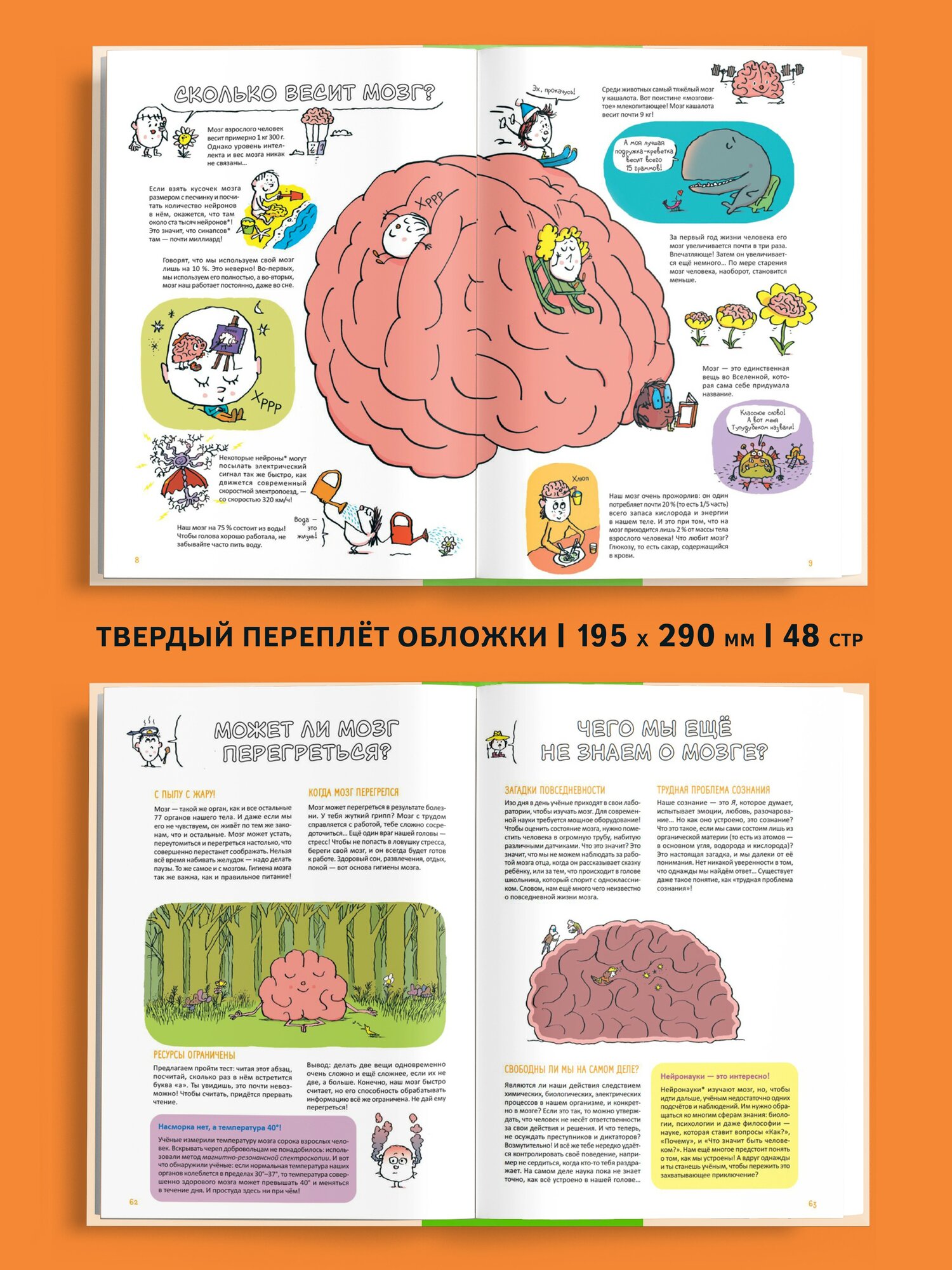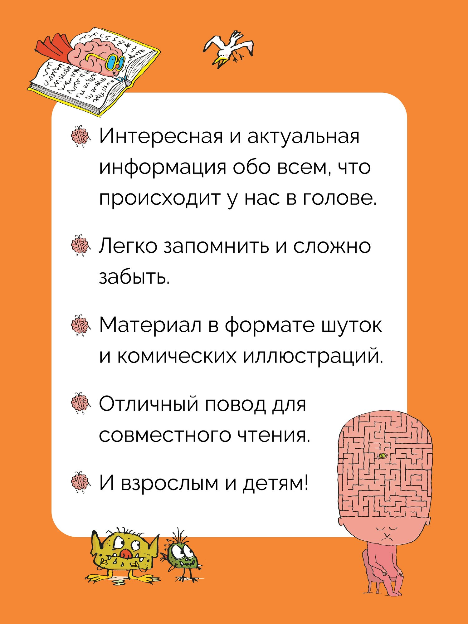 Откуда берутся наши идеи? Что такое нейрон? Одинаковые ли мозги у мальчиков и девочек? Наши сны, работа человеческого организма, эмоции, обучение — всё это связано с мозгом. Внутри книги собрано более тридцати вопросов о мозге от реальных детей. Ответы на них получились интересными, понятными и порой неожиданными. Авторы книги — детский писатель Рафаэль Мартен и доктор нейробиологии Альберт Мукейбер. А смешные иллюстрации Паскаля Леметра не оставят без улыбки ни ребёнка, ни взрослого. Для детей младшего и среднего школьного возраста.5 причин взять книгу для своего ребенка:1. Один из авторов книги – доктор нейробиологии.2. Интересная и актуальная информация обо всем, что происходит у нас в голове.3. Материал в формате шуток и комических иллюстраций легко запомнить и сложно забыть.4. Интересно и познавательно как детям, так и взрослым. Книга может стать отличным поводом для совместного чтения.5. Узнаем новое и разбираемся в себе.