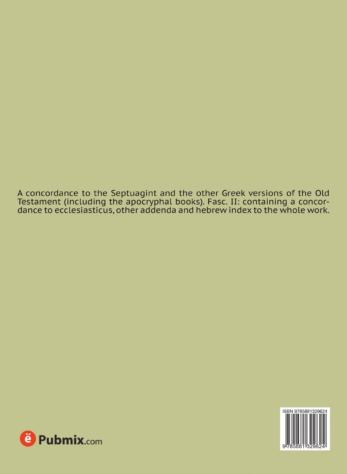 A concordance to the Septuagint and the other Greek versions of the Old Testament (including the apocryphal books). Fasc. II: containing a concordance to ecclesiasticus, other addenda and hebrew index to the whole work. Воспроизведено в оригинальной авторской орфографии издания 1906 года (издательство "Clarendon Press"). Эта книга будет изготовлена в соответствии с Вашим заказом по технологии Print-on-Demand компанией ООО «Книга по Требованию». Print-on-Demand - это технология печати книг по Вашему заказу на цифровом типографском оборудовании. Книга, напечатанная по технологии Print-on-Demand, представляет собой классический «евро-покет» с соблюдением всех стандартов качества, от офсетной бумаги и плотного картона до качественного клея, используемого при изготовлении. Информация о материалах, используемых при печати: - бумага - офсетная (белая), 80 г/м, - обложка - цветная мягкая (картон 250-300 г/м), - текстовый блок (включая иллюстрации) - черно-белый, - скрепление блока - КБС (по стандарту современных «pocket-books»). Заказ обрабатывается в индивидуальном порядке: каждой книге, напечатанной по технологии Print-on-Demand, присваивается уникальный номер.