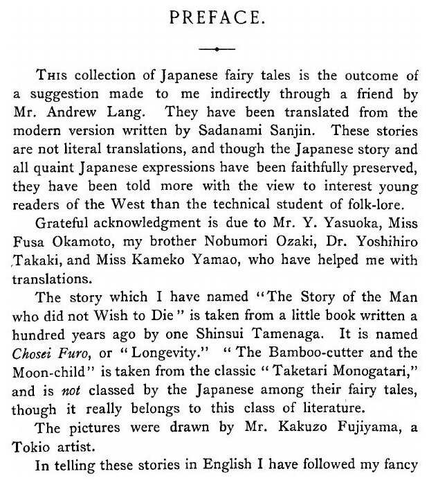 Twenty-two Japanese legends and fairy tales about peasants and kings, good and bad forces, princesses, animals, the sea, and the sky written for children of the West.