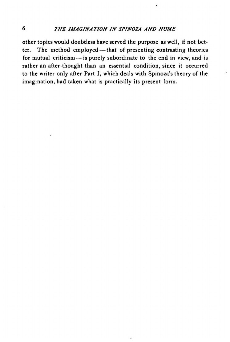 The imagination in Spinoza and Hume: a comparative study in the light of some recent contributions to psychology (1902). Воспроизведено в оригинальной авторской орфографии издания 1902 года (издательство "Chicago: The University of Chicago Press").