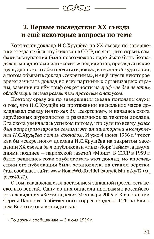 XX съезд КПСС, на котором Н.С.Хрущев зачитал «секретный» доклад «О культе личности и его последствиях», стал рубежом в истории советского государства. Эпоха после съезда требует глубокого понимания и переосмысления, в том числе - ее психологической подоплеки. А понимание обоих исторических периодов (до и после съезда) - актуальная тема до сих пор. В книге подробно рассмотрен доклад Хрущева и обстоятельства его возникновения, что помогает понять истинные цели и мотивы его авторов. Изложен механизм возникновения культов личности и отношение Сталина к этому явлению.