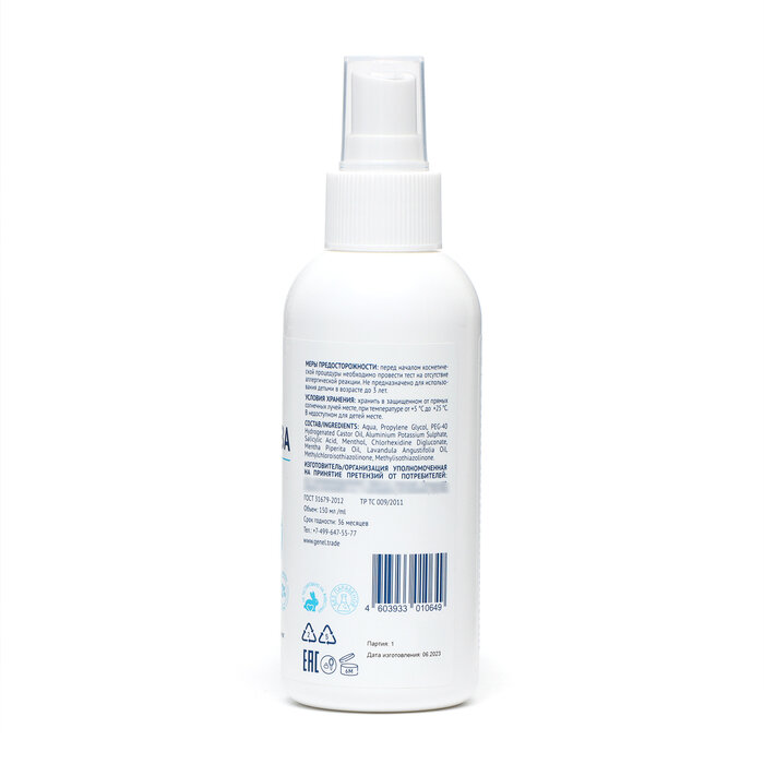 | Состав | Aqua, Propylene Glycol, Polysorbate 20, Aluminium Potassium Sulphate, Salicylic Acid, Chlorhexidine Digluconate, Mentol, Mentha Piperita Oil, Lavandula Angustifolia Oil, Sodium Benzoate, Potassium Sorbate. |