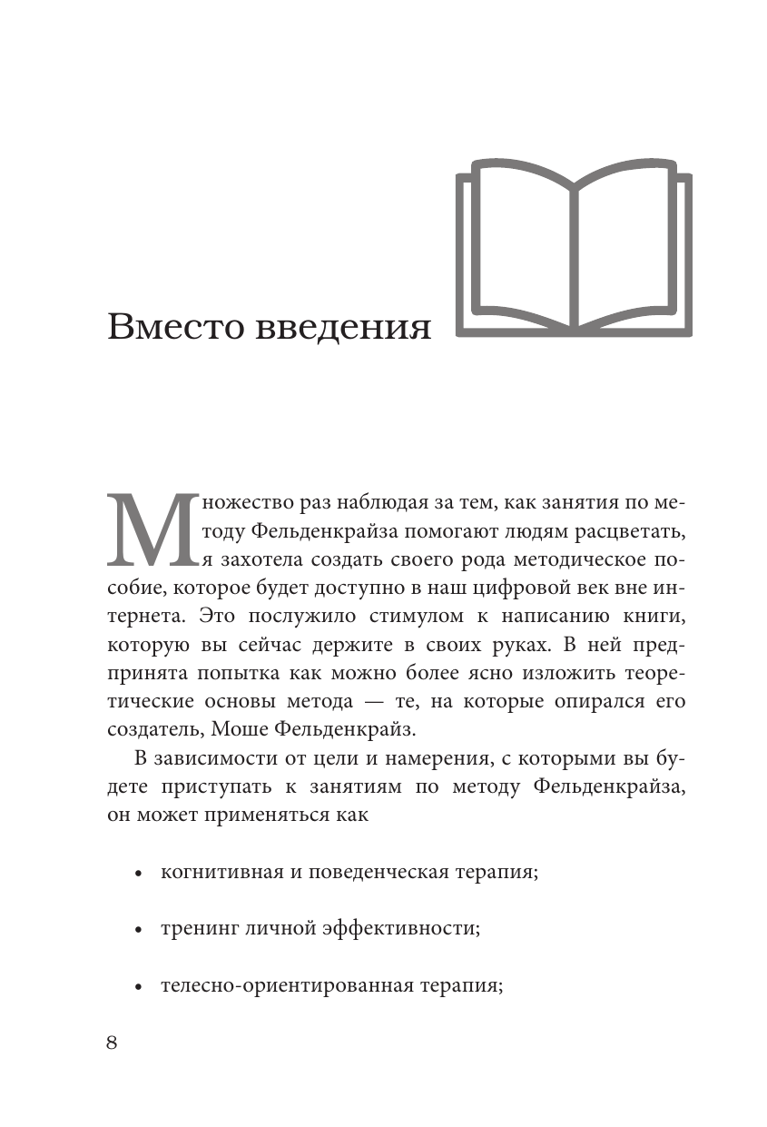 Автор, ученица школы Фельденкрайза, рассказывает, как возможно применить Метод Фельденкрайза на практике и добиться улучшения эмоционального, когнитивного, физического качества жизни, достигаемого за счёт раскрытия человеком своего врождённого потенциала.