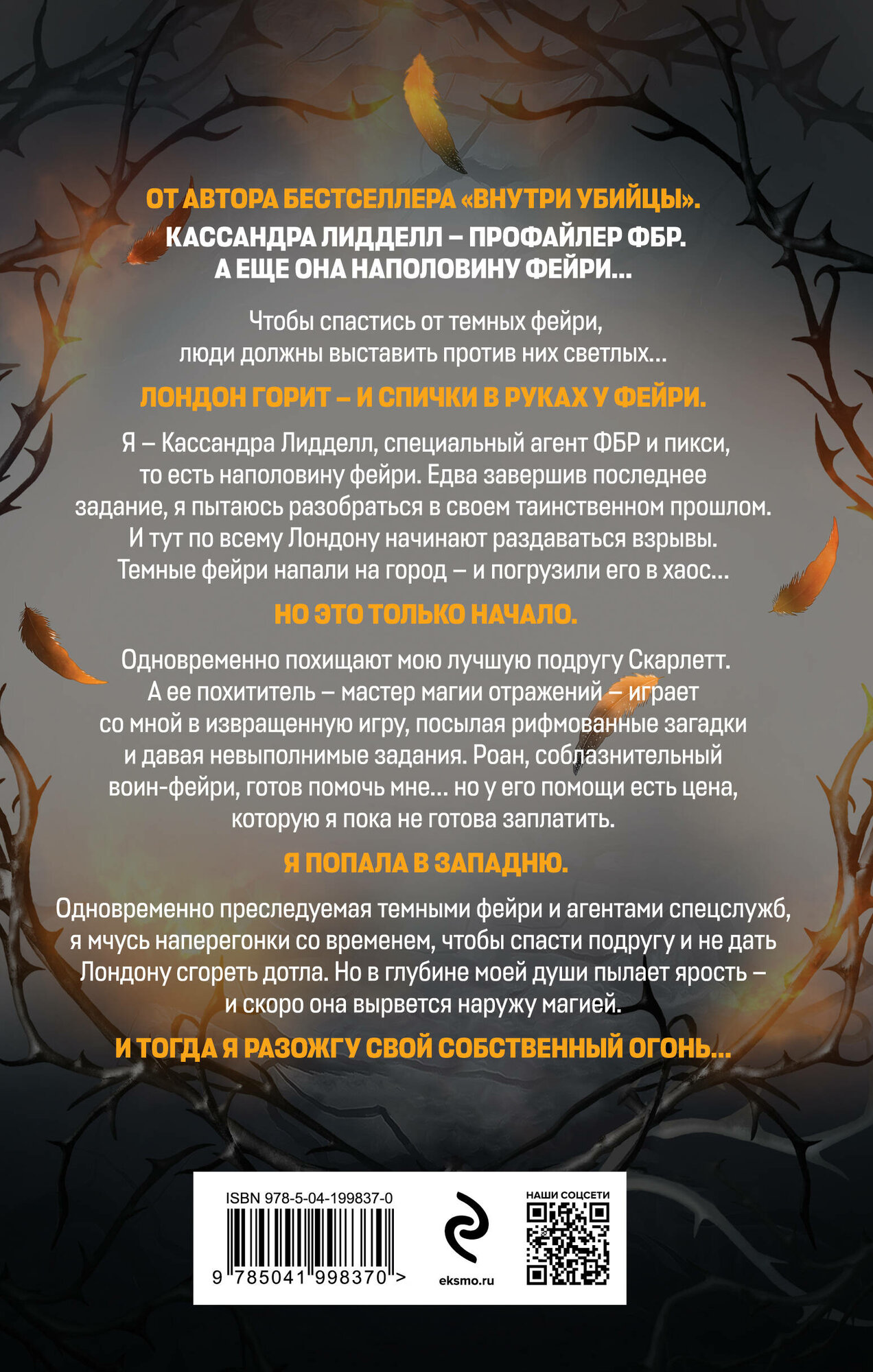 Я – Кассандра Лидделл, специальный агент ФБР и пикси, то есть наполовину фейри. Едва завершив последнее задание, я пытаюсь разобраться в своем таинственном прошлом. И тут по всему Лондону начинают раздаваться взрывы. Темные фейри напали на город – и погрузили его в хаос… Одновременно похищают мою лучшую подругу Скарлетт. А ее похититель – мастер магии отражений – играет со мной в извращенную игру, посылая рифмованные загадки и давая невыполнимые задания. Роан, соблазнительный воин-фейри, готов помочь мне… но у его помощи есть цена, которую я пока не готова заплатить. Я попала в западню. Одновременно преследуемая темными фейри и агентами спецслужб, я мчусь наперегонки со временем, чтобы спасти подругу и не дать Лондону сгореть дотла. Но в глубине моей души пылает ярость – и скоро она вырвется наружу магией. И тогда я разожгу свой собственный огонь…