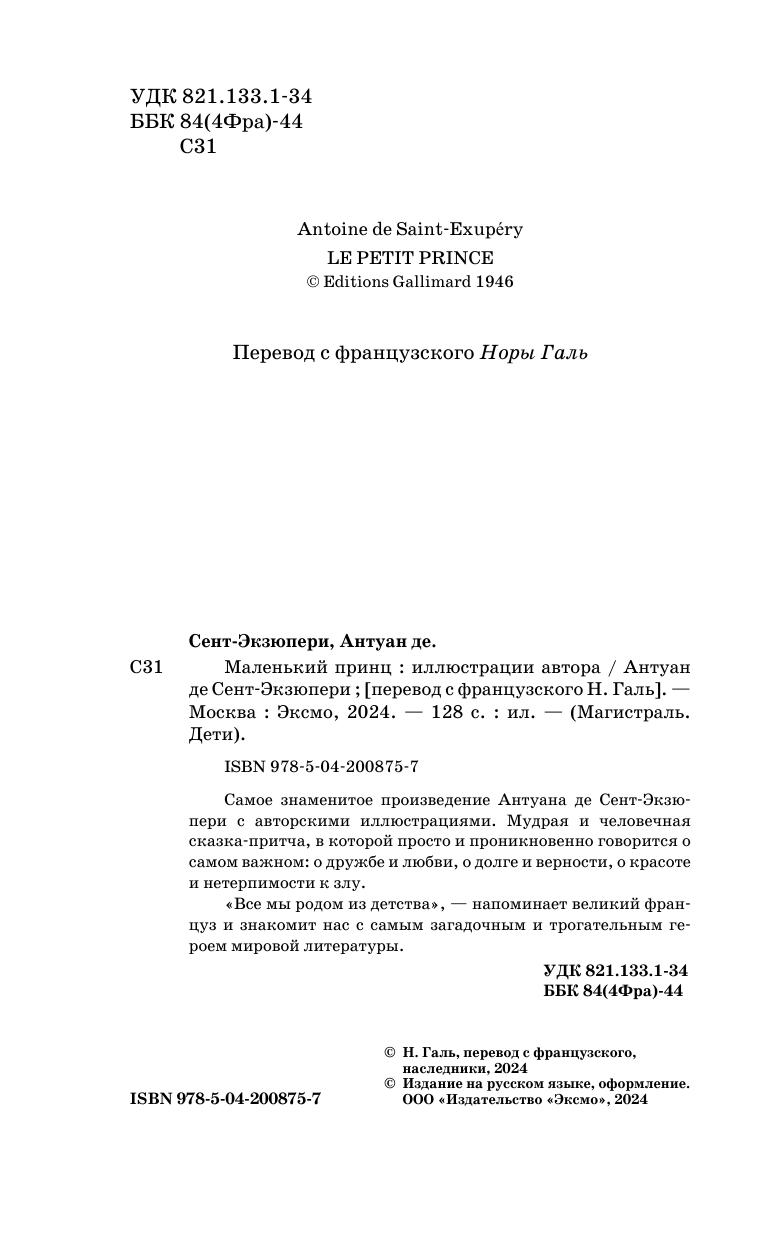 Книга: Маленький принц (Сент-Экзюпери Антуан де); ООО "Издательство "Эксмо", 2024