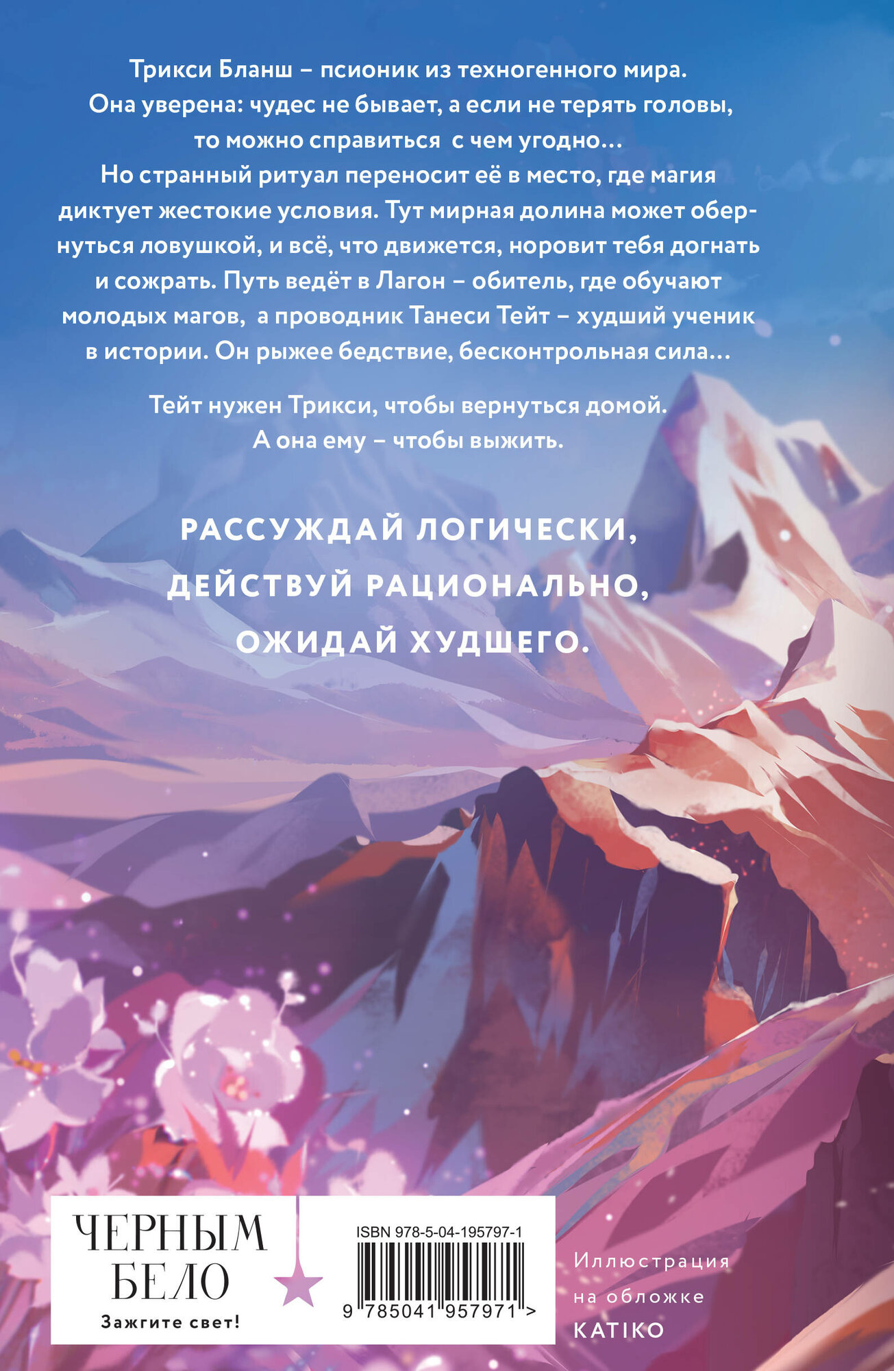Трикси Бланш — псионик из техногенного мира. Она уверена: чудес не бывает, а если не терять головы, то можно справиться с чем угодно… Но странный ритуал переносит её в место, где магия диктует жестокие условия. Тут мирная долина может обернуться ловушкой, и всё, что двигается, норовит тебя догнать и сожрать. Путь ведёт в Лагон — обитель, где обучают молодых магов, а проводник — Танеси Тейт, худший ученик в истории. Он рыжее бедствие, бесконтрольная сила… Тейт нужен Трикси, чтобы вернуться домой. А она ему — чтобы выжить. «Уроки Лагона: Беги или гори» — роман Софьи Ролдугиной, автора дилогии «Эхо Миштар», в сеттинге магического постапокалипсиса. Яркий, необычный мир с аниме-вайбом. Персонажи втянуты в опасную игру по неизвестным правилам. Тот, кто медленно бегает, долго не живёт. У мастера Лагона есть синяя чешуя и щупальца, а у вас? Оформление от художницы KATIKO.