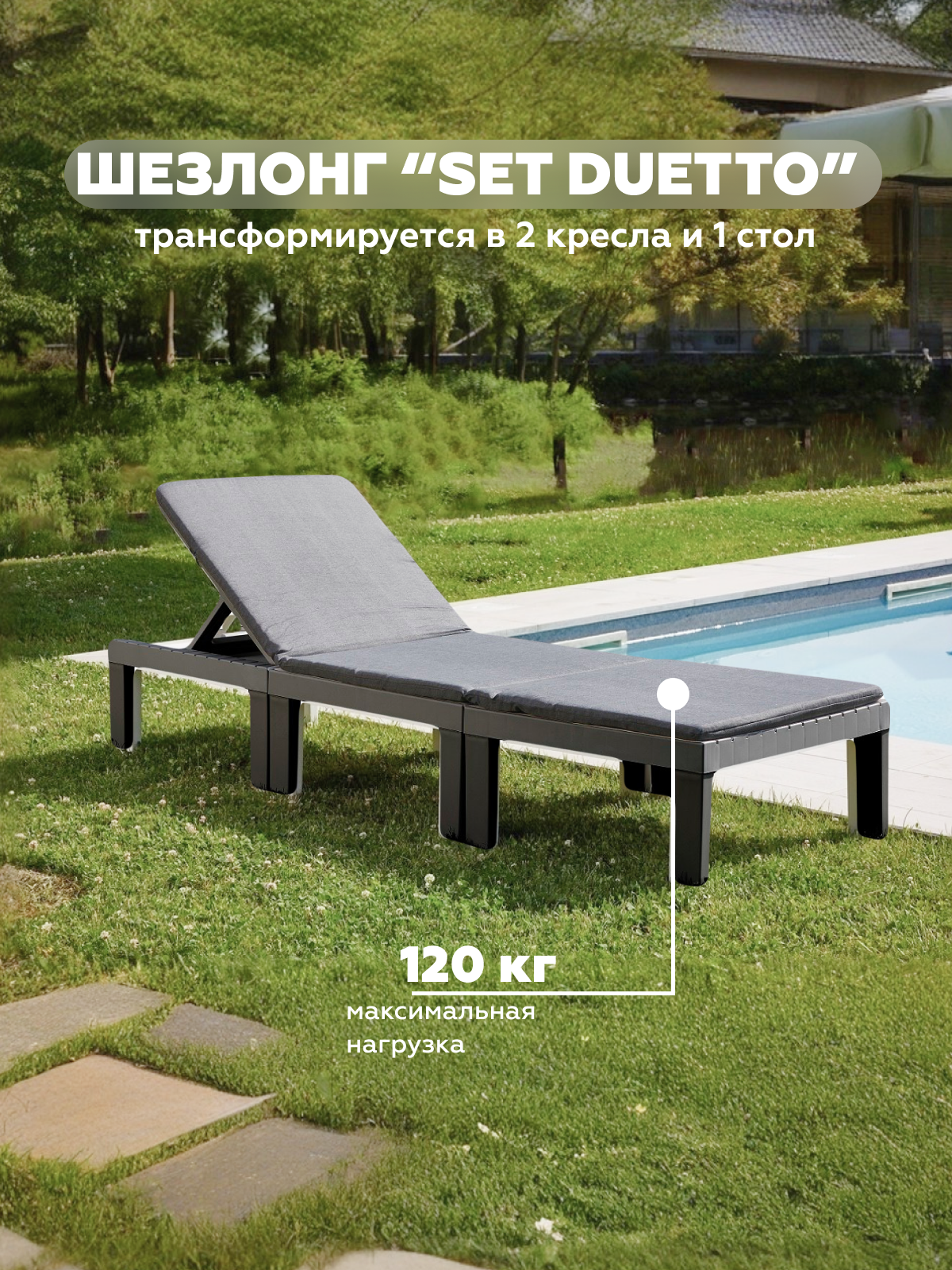 Шезлонг складной PROGARDEN многофункциональный "DUETTO" 08841 антрацит