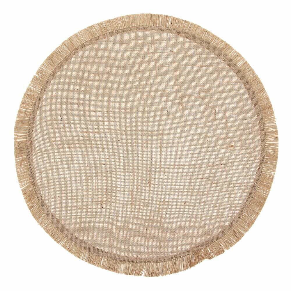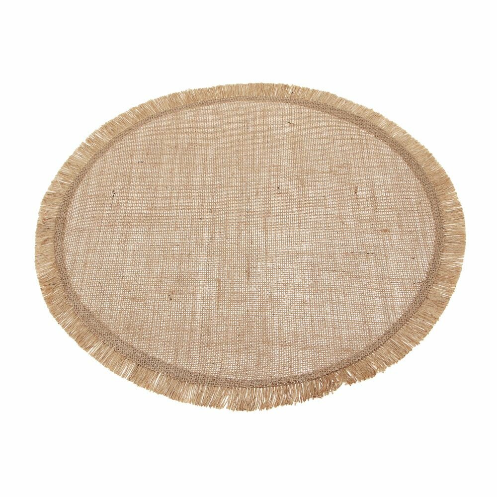 Сервировочная салфетка ЭКО из джута - поможет создать красивую атмосферу за обеденным столом, будет препятствовать загрязнению и изнашиванию столешницы. Кухонная салфетка не только оградит поверхности от пятен и крошек, но и позволит с минимальными усилиями и вложениями освежить интерьер. Салфетка круглой формы 38 см в диаметре с окантовкой из бахромы. Рекомендуется мыть вручную под проточной водой с использованием нейтральных моющих средств.