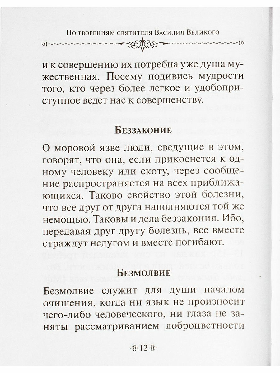 Данная работа представляет собой сборник душеспасительных и назидательных изречений святителя Василия Великого на различные духовно-нравственные темы, взятые из его творений и расположенные в алфавитном порядке. Издание рассчитано на широкий круг православных читателей. Гриф Рекомендовано Изд.советом РПЦ
