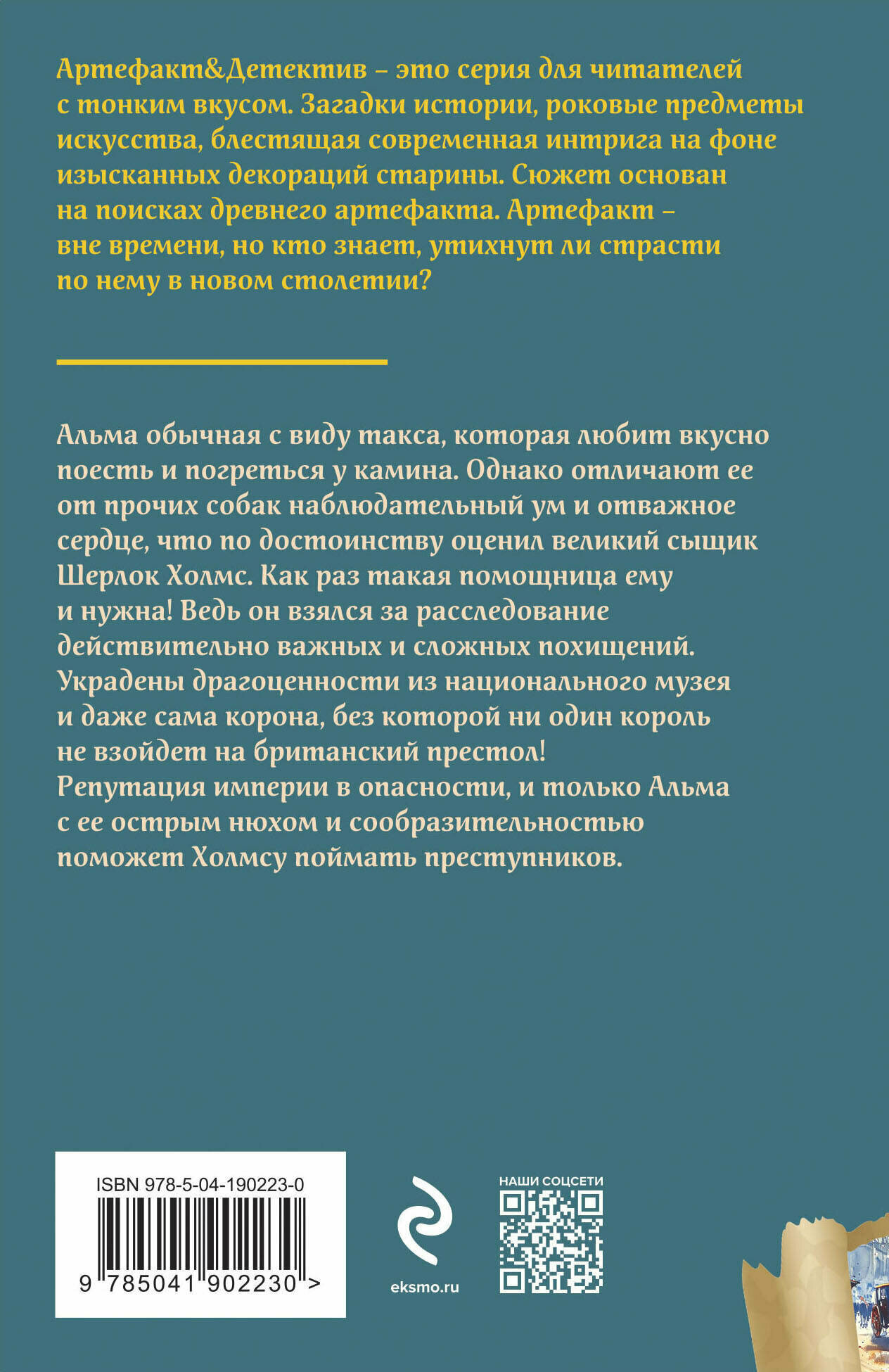 Альма обычная с виду такса, которая любит вкусно поесть и погреться у камина. Однако отличает ее от прочих собак наблюдательный ум и отважное сердце, что по достоинству оценил великий сыщик Шерлок Холмс. Как раз такая помощница ему и нужна! Ведь он взялся за расследование действительно важных и сложных похищений. Украдены драгоценности из национального музея и даже сама корона, без которой ни один король не взойдет на британский престол! Репутация империи в опасности, и только Альма с ее острым нюхом и сообразительностью поможет Холмсу поймать преступников.