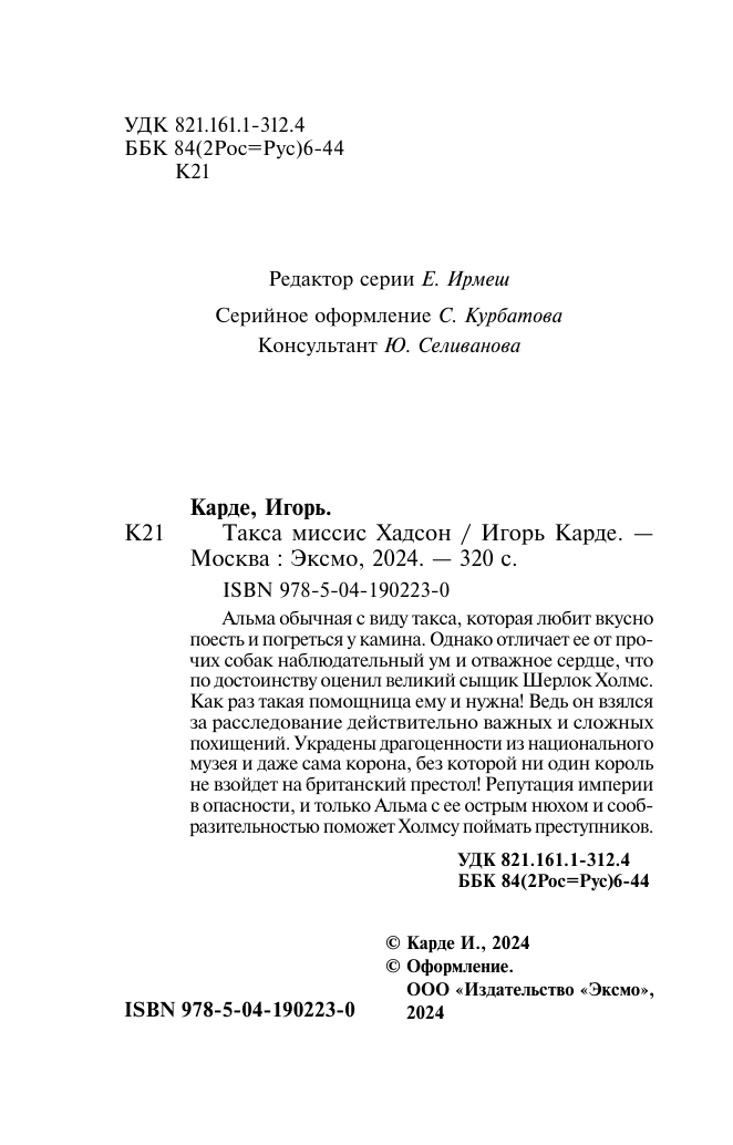 Книга: Такса миссис Хадсон (Игорь Карде); Эксмо, 2024