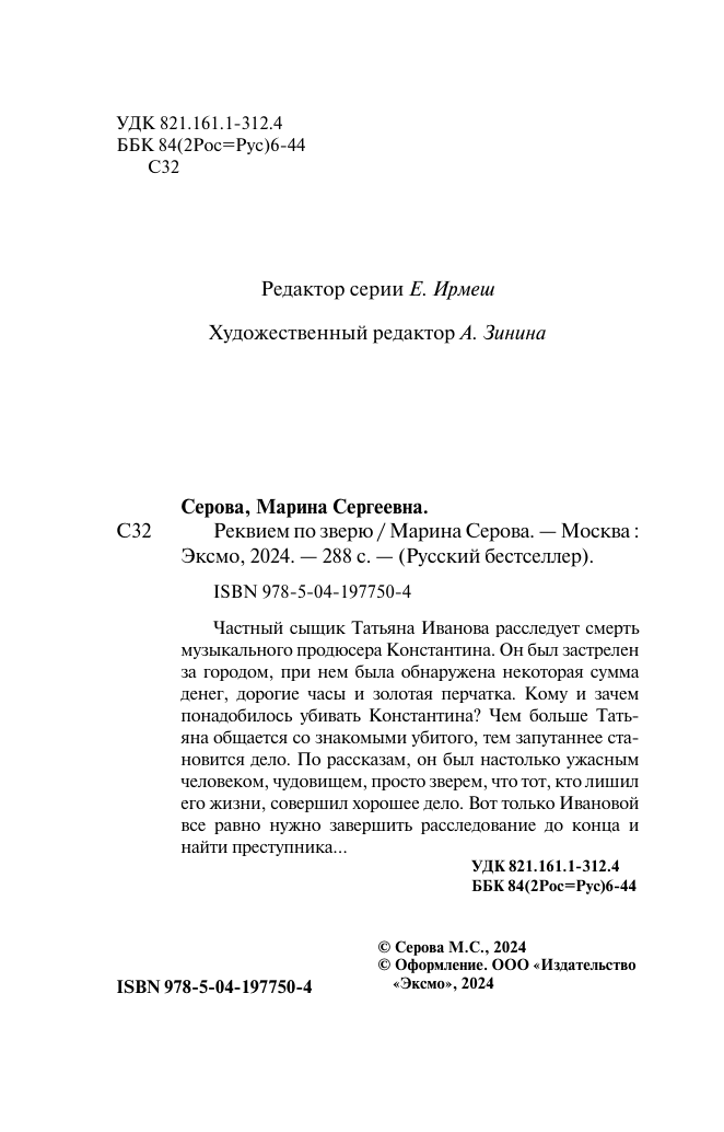 Книга: Реквием по зверю (Марина Сергеевна Серова); Эксмо, 2024