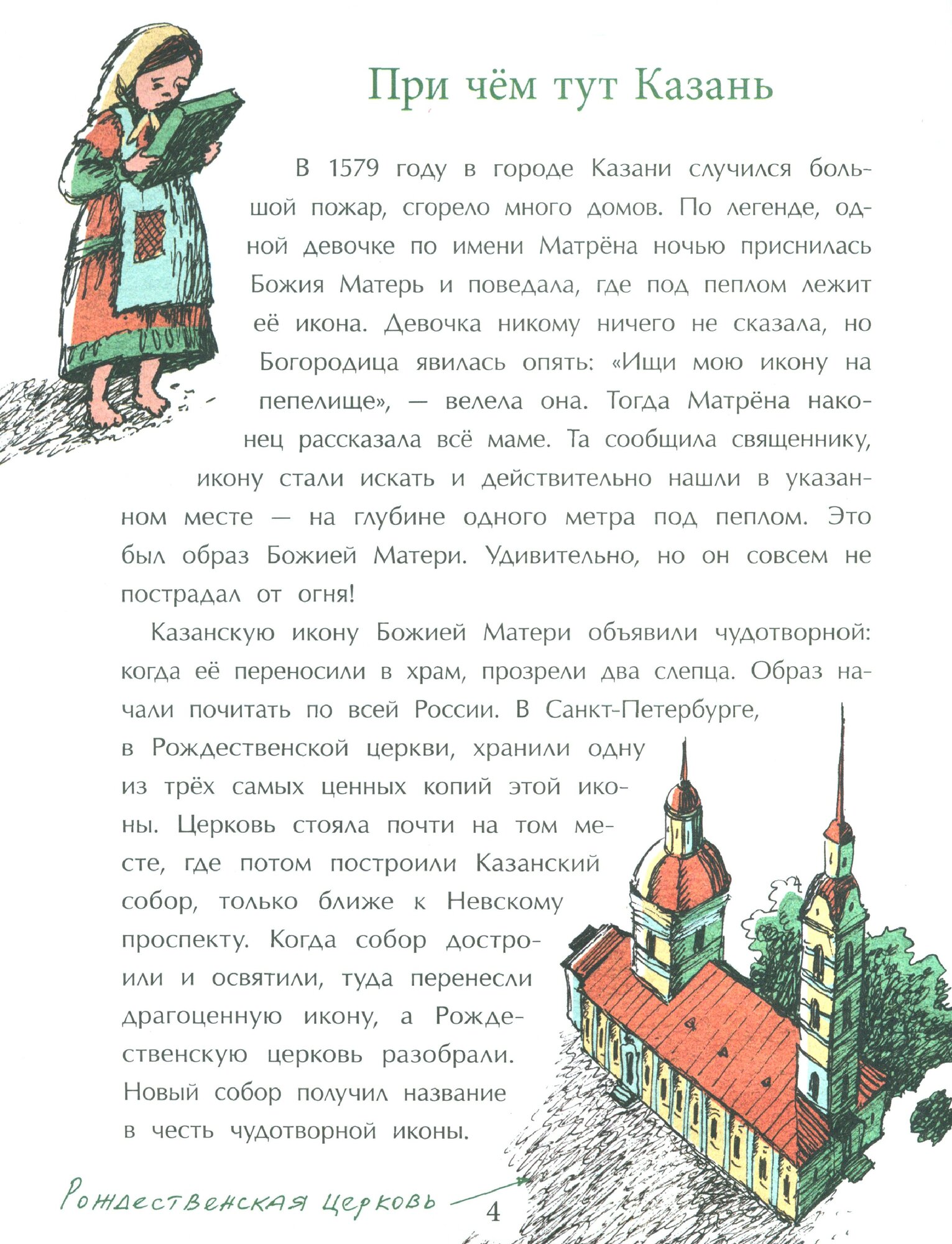 Казанский собор в Санкт-Петербурге не похож ни на один другой храм в нашей стране. Он как будто бы состоит из одних колонн! Почему собор такой необычный, какой гений его проектировал и какие мастера строили? После войны 1812 года храм стал памятником русской воинской славы, а в прошлом веке побывал музеем атеизма. О драматичной истории удивительного Казанского собора рассказывает эта книга. Для младшего школьного возраста.