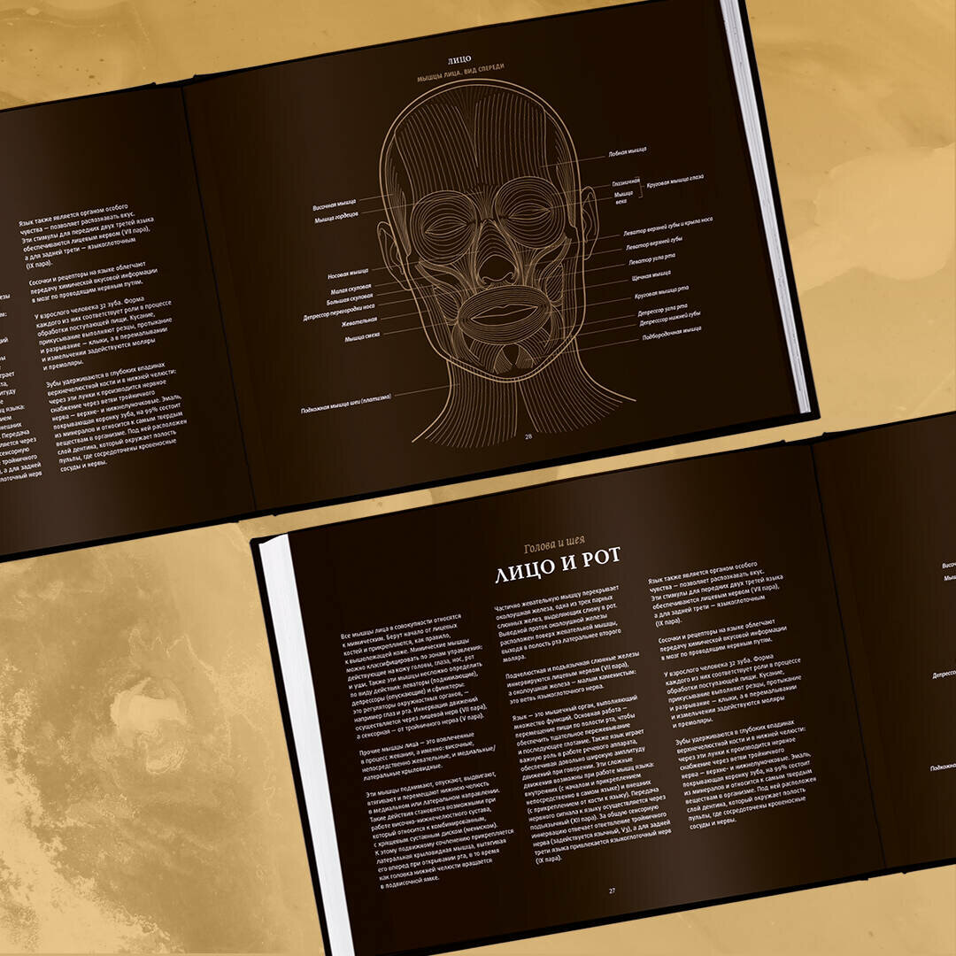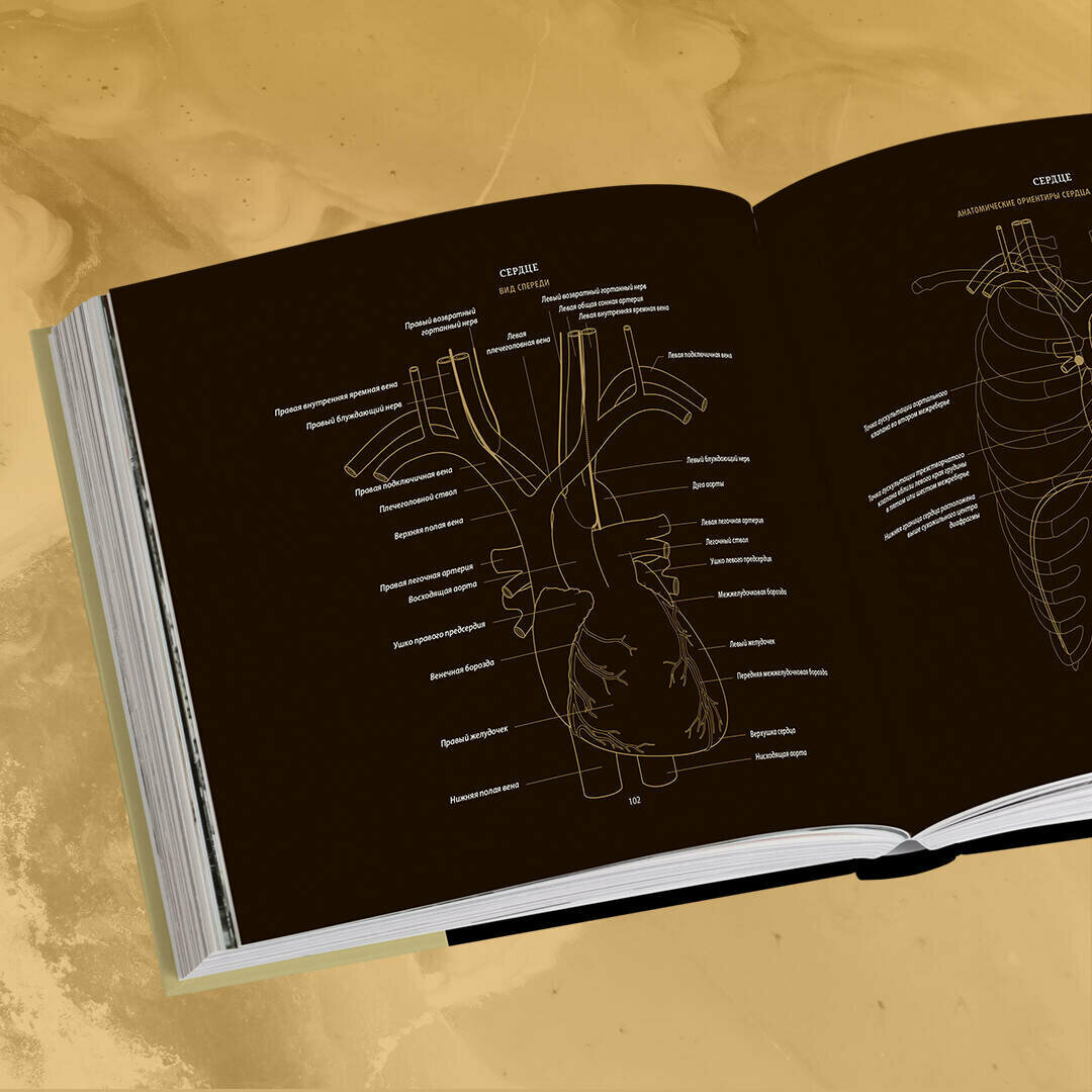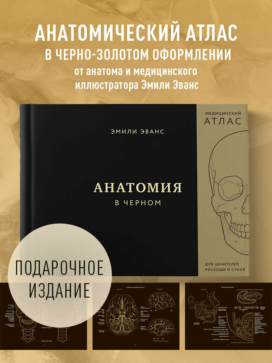 Этот необычное издание «Черная анатомия» перевернет ваше мнение об атласах. Необычно оформление — золото и черный атл'ас — напомнят, как ценно человеческое тело. Автор книги — Эмили Эванс собрала основные анатомические рисунки костей, мускулов и внутренних органов с подробными надписями. Изучение анатомии еще никогда не было так близко к искусству.