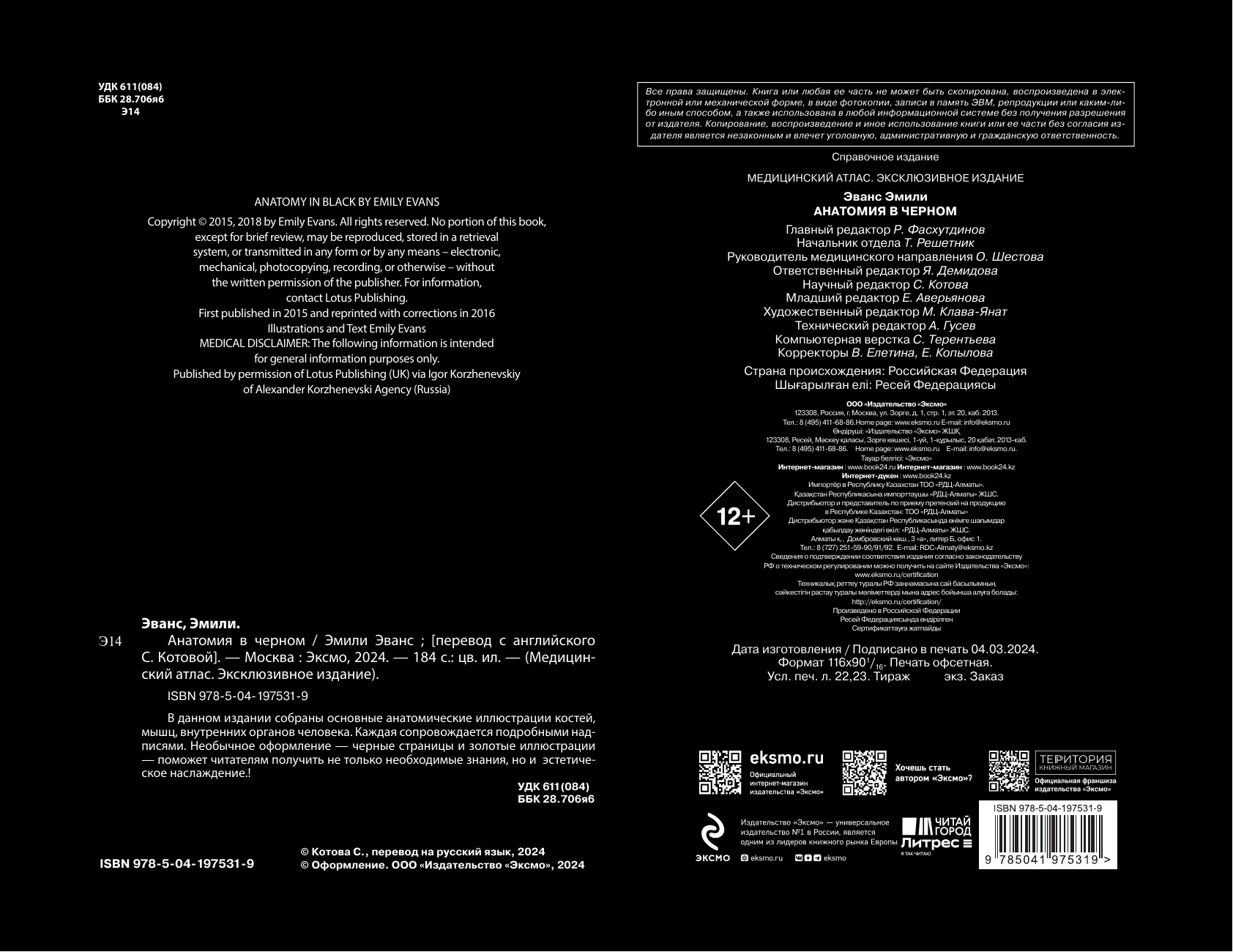 Анатомия в черном. Медицинский атлас для любителей роскоши и стиля (Эмили Эванс); Эксмо, БОМБОРА, 2024