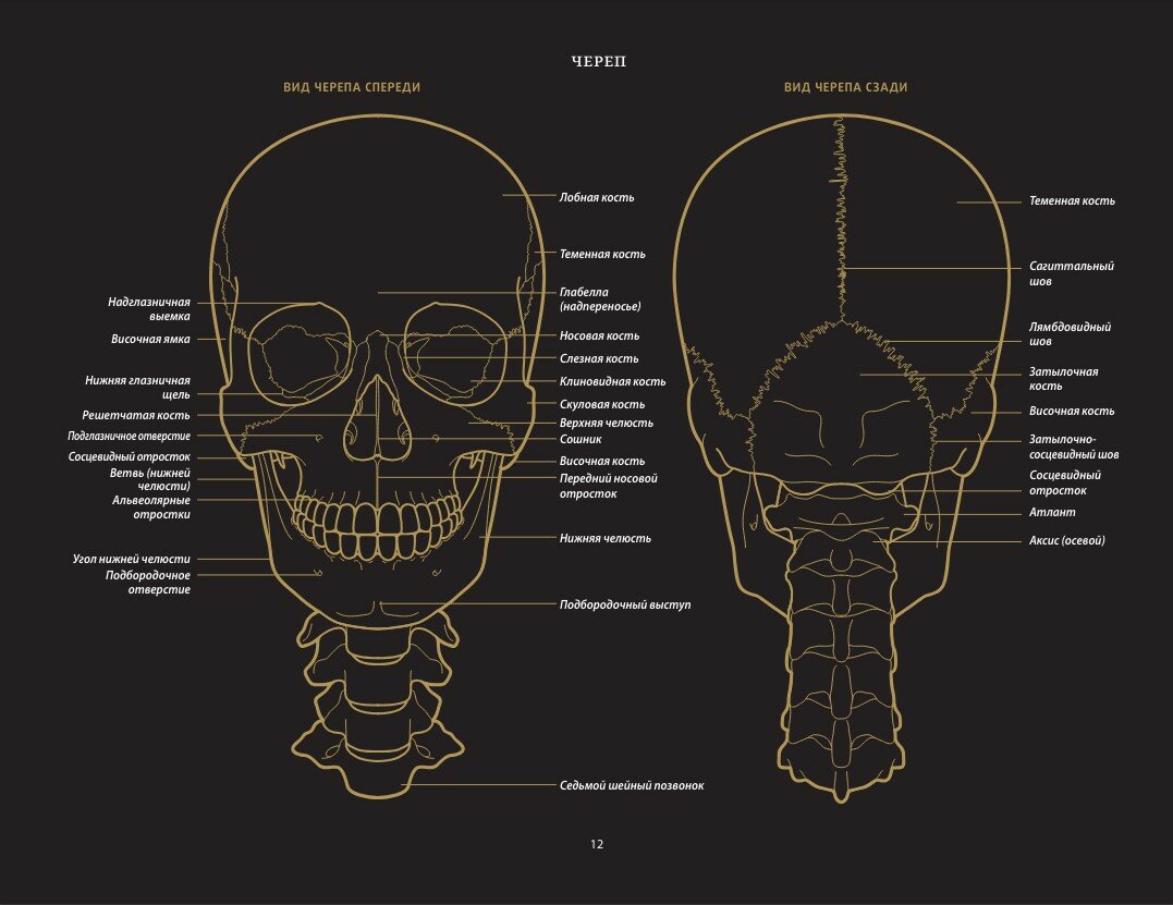 В данном издании собраны основные анатомические иллюстрации костей, мышц, внутренних органов человека. Каждая сопровождается подробными надписями. Необычное оформление - черные страницы и золотые иллюстрации - поможет читателям получить не только необходимые знания, но и эстетическое наслаждение.