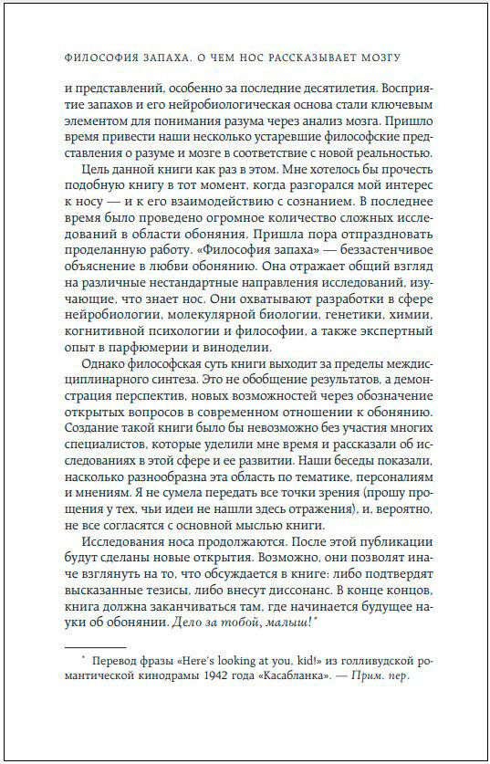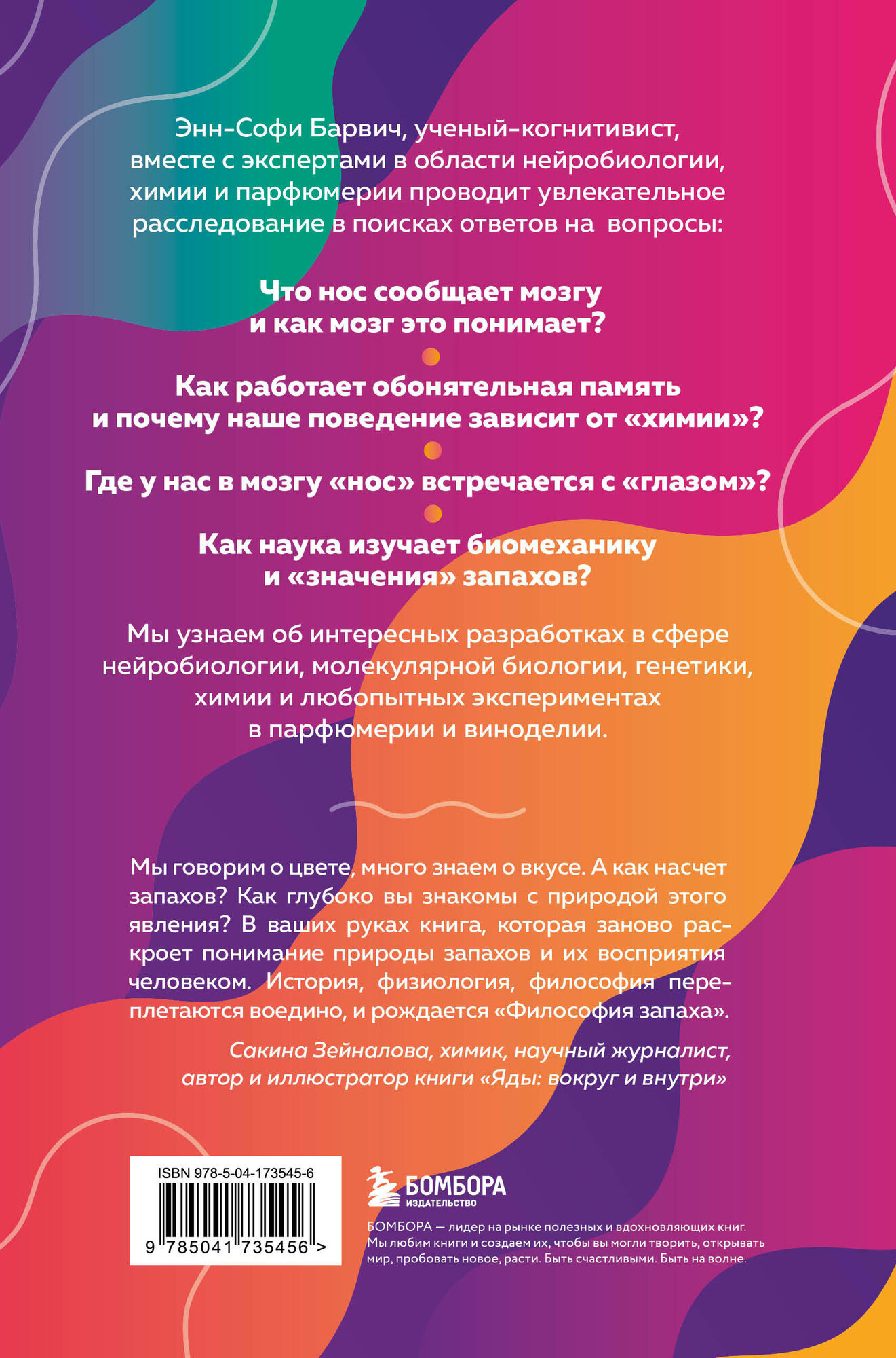 Сегодня люди слишком сосредоточены на визуальных образах, недооценивая собственное удивительно острое обоняние. Популяризатор науки и ученый когнитивист Энн-Софи Барвич вместе с экспертами в области нейробиологии, психологии, химии и парфюмерии, провела иссследование в поисках ответов на вопросы: что нос сообщает мозгу и как мозг это понимает? Как работает обонятельная память и почему наше поведение зависит от "химии"? Где у нас в голове "нос" встречается с "глазом"? Автор рассказывает о том, как изучают биологическую механику и "значения" запахов, а еще - об интересных разработках в сфере нейробиологии, молекулярной биологии, генетики, химии и любопытных экспериментах в парфюмерии и виноделии.