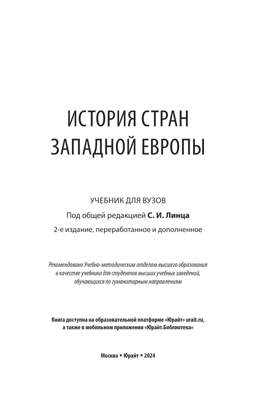 История стран Западной Европы 2-е изд. пер. и доп. Учебник для вузов (Линец Сергей Иванович, Ермаков Виктор Павлович, Акопян Виктор Завенович, Зюзин Виктор Викторович, Лебедев Геннадий Юрьевич, Каспарян Константин Викторович, Линец Александр Сергеевич, Горбунов Александр Павлович), 2023