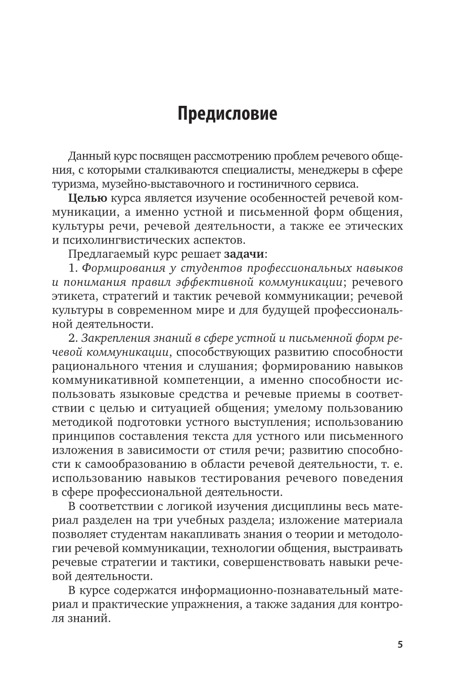 В представленном курсе рассматриваются основные понятия теории речевой коммуникации, включая совершенствование навыков речевой деятельности, а также ее этические, социо- и психолингвистические аспекты. В соответствии с логикой изучения дисциплины весь материал разделен на три учебных раздела; изложение материала позволяет студентам накапливать знания о теории и методологии речевой коммуникации, технологии общения, выстраивать речевые стратегии и тактики, совершенствовать навыки речевой деятельности. Для обучающихся по гуманитарным специальностям СПО.