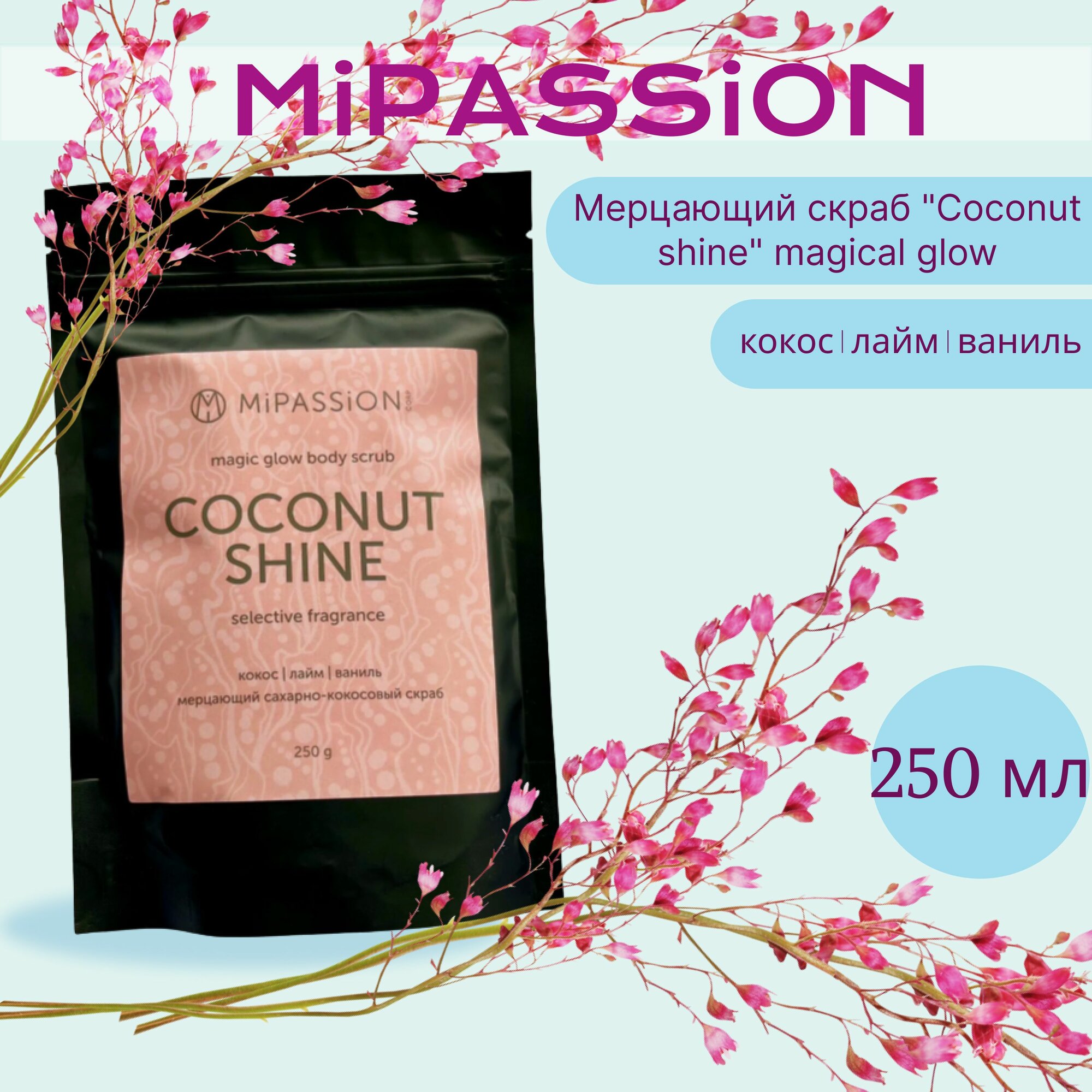MIPASSIONcorp Скраб мерцающий кокос лайм ваниль / Coconut shine magical glow MiPASSiON 250 гр (4631169205713)